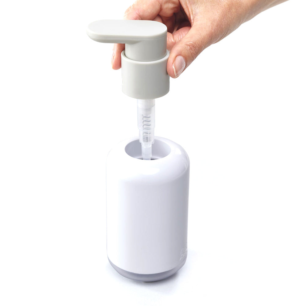 De Duo zeepdispenser is extra makkelijk in gebruik dankzij de brede pomp welke makkelijk open en dicht te draaien is. Dankzij de extra grote inhoud van 350 ml hoeft de dispenser niet zo vaak bijgevuld te worden. Daarnaast is de onderzijde van de dispenser voorzien van een antislip laag wat ervoor zorgt dat hij tijdens het gebruik stevig blijft staan.