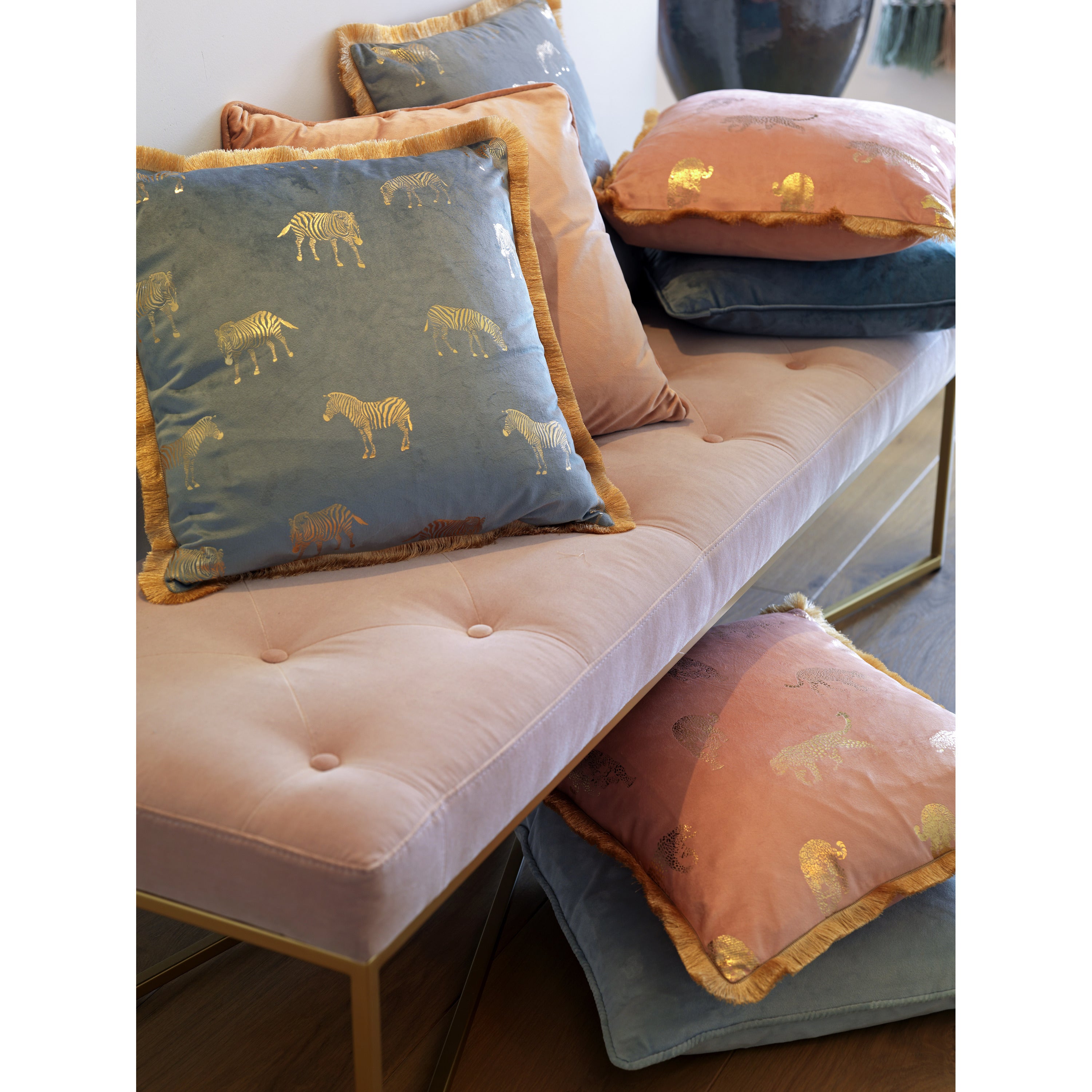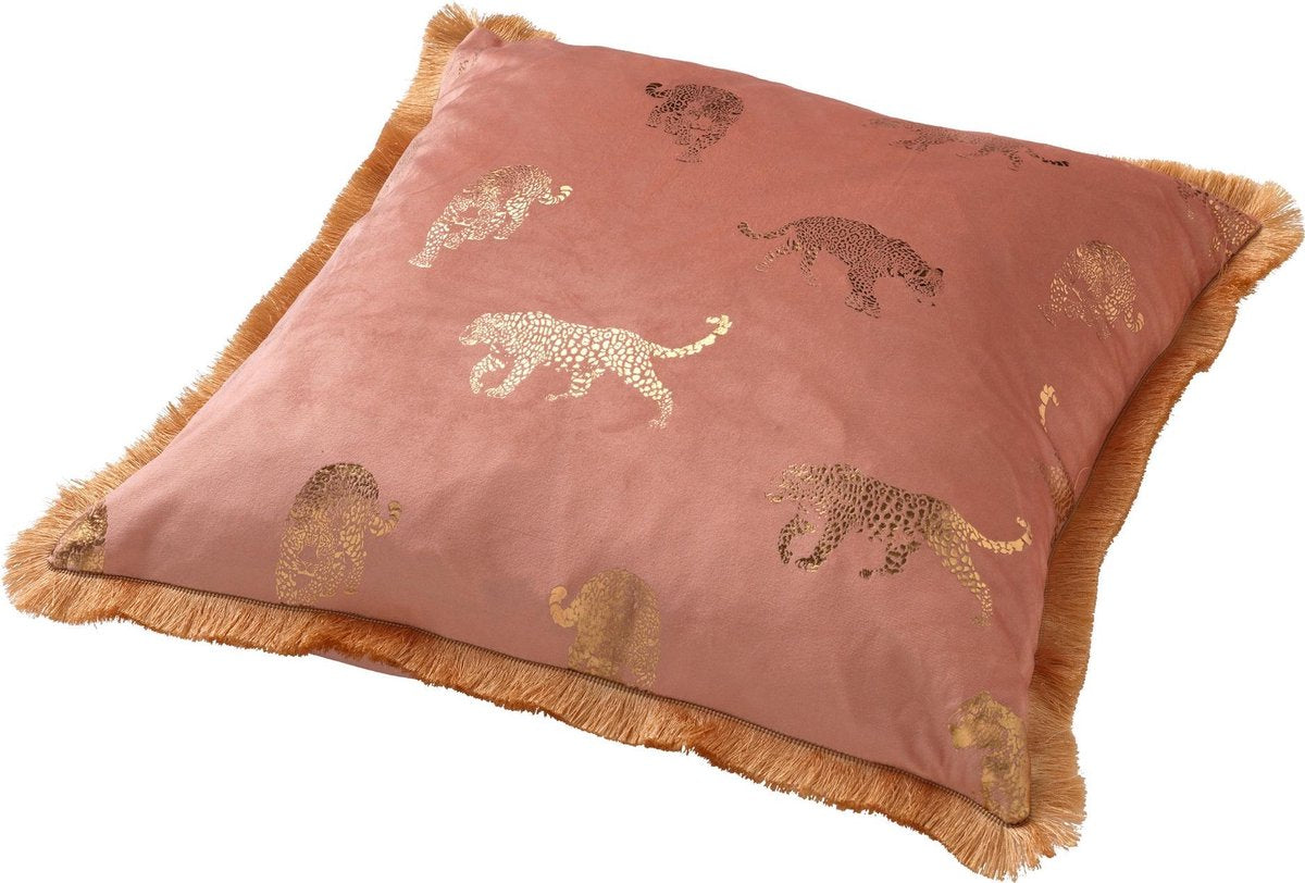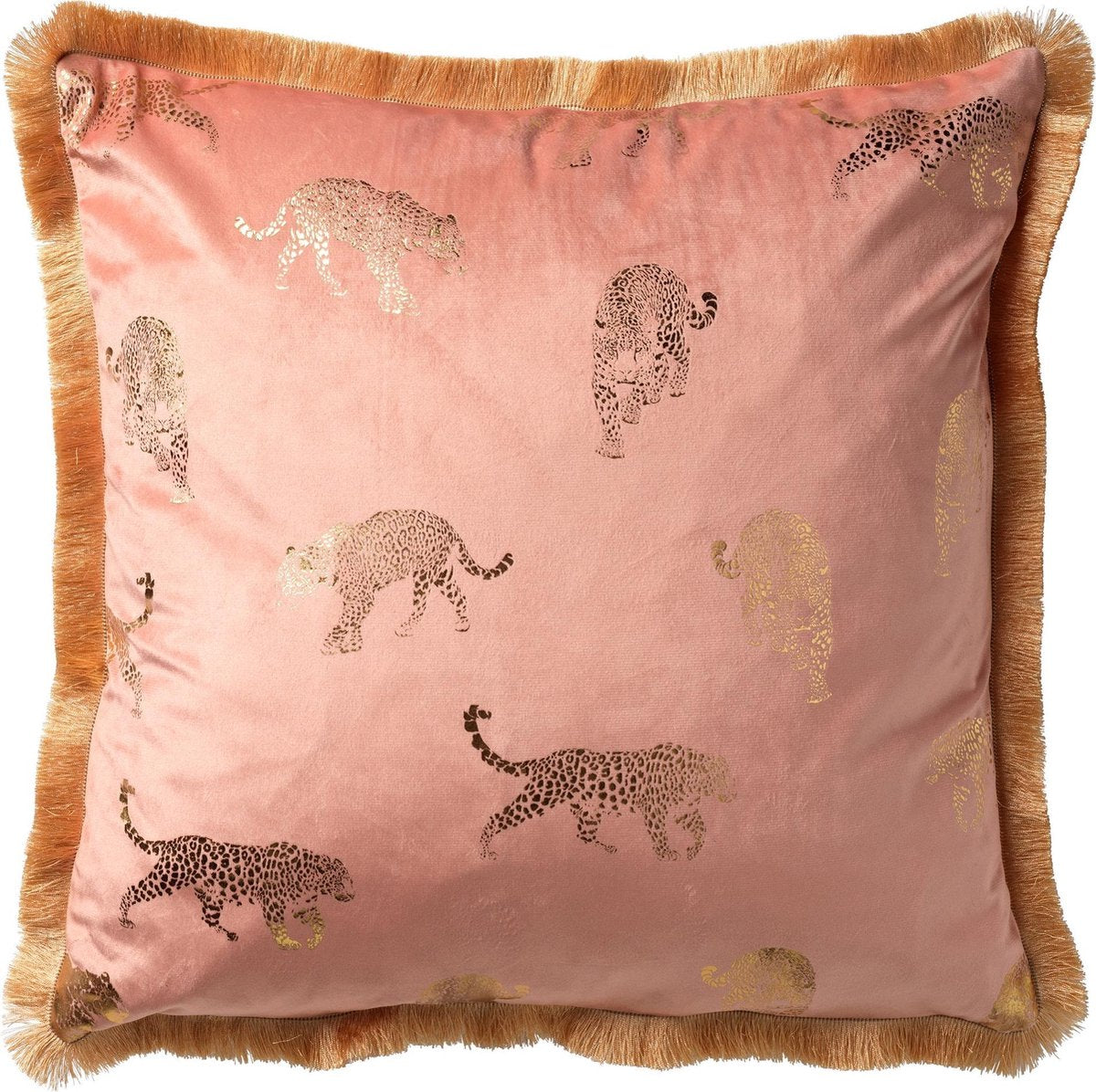 - Het kussen heeft een luipaard print en franjes aan de zijkant