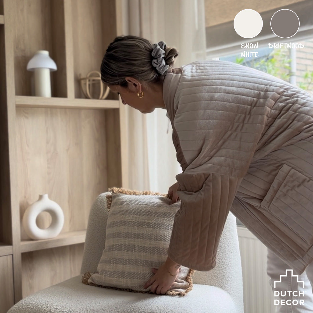 Dutch Decor is onderdeel van Rogon Products B.V. en staat sinds 1994 bekend om de uitgebreide collectie sierkussens en plaids. Ieder seizoen introduceert Dutch Decor twee Trend collections met actuele kleuren, structuren en dessins. Daarnaast is er de Essentials collection: een vaste lijn kussens en plaids in veertien tijdloze tinten die eenvoudig te combineren zijn met uiteenlopende interieurs. Alle ontwerpen volgen het Mix & Match-concept, zodat je moeiteloos een persoonlijke combinatie samenstelt. Dankzij de jarenlange ervaring in ontwerp en productie en de samenwerking met vakmensen in het Verre Oosten weet Dutch Decor steeds de juiste balans te vinden tussen kwaliteit, comfort en eigentijdse uitstraling. Het resultaat is woontextiel dat je interieur persoonlijker maakt en eenvoudig laat meegroeien met het seizoen.