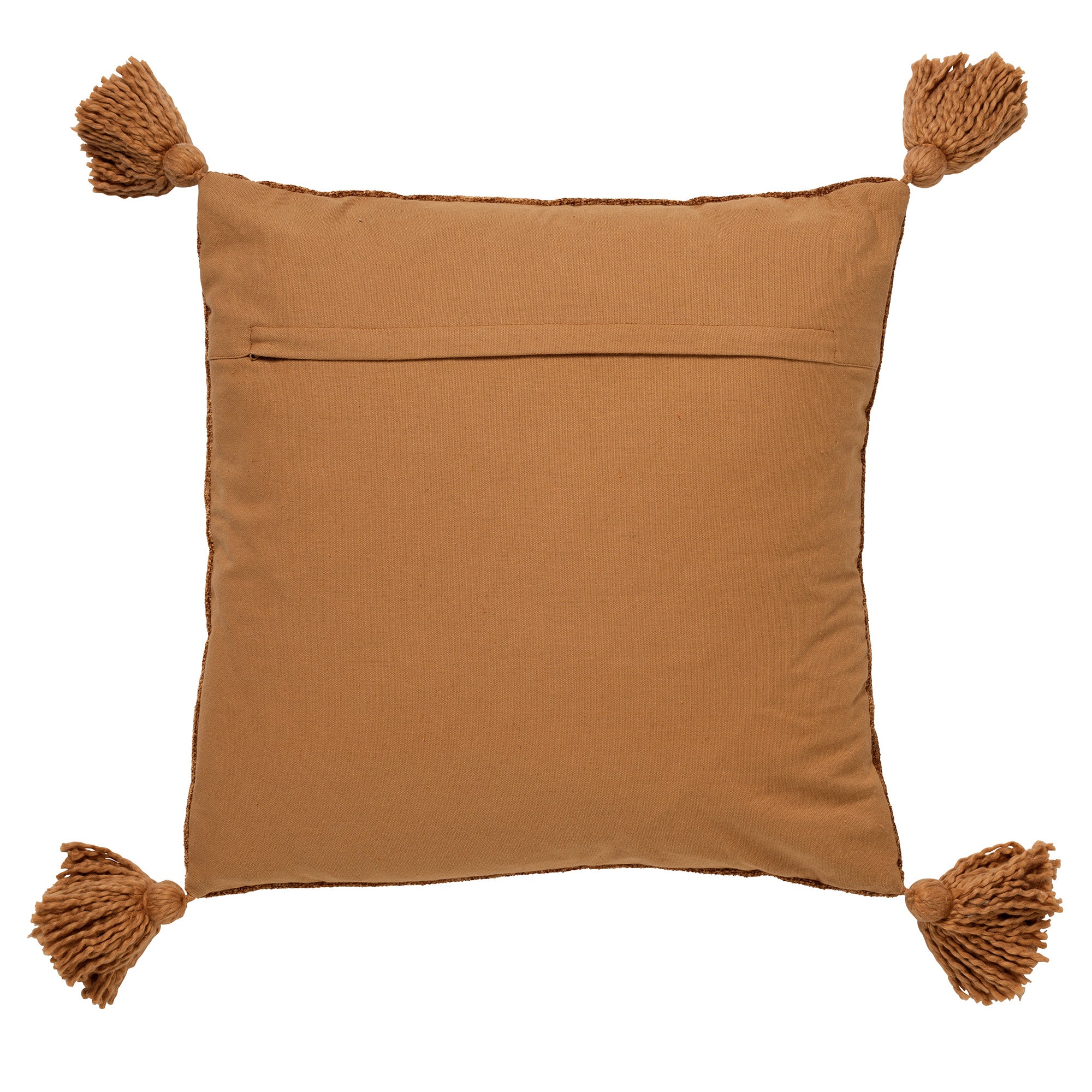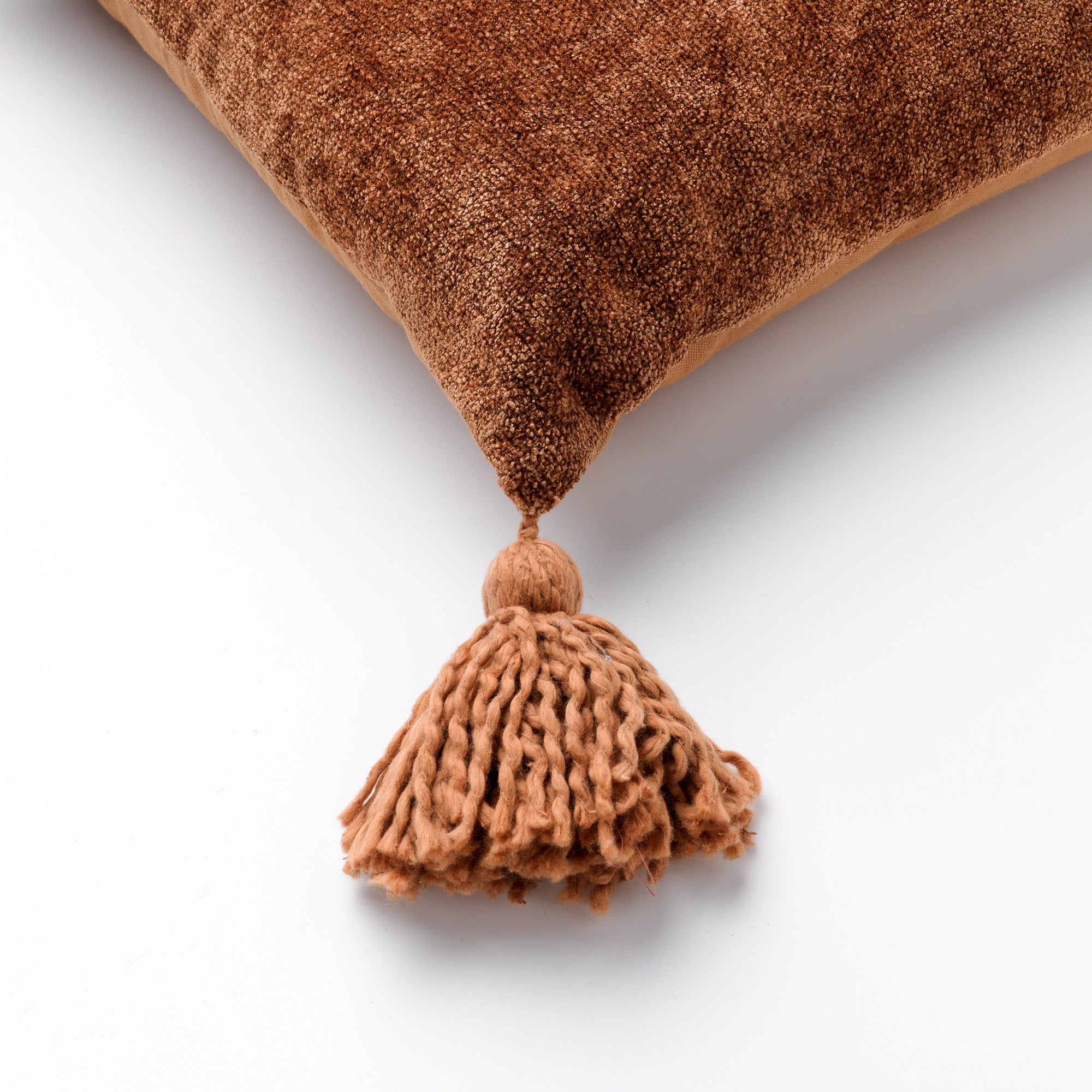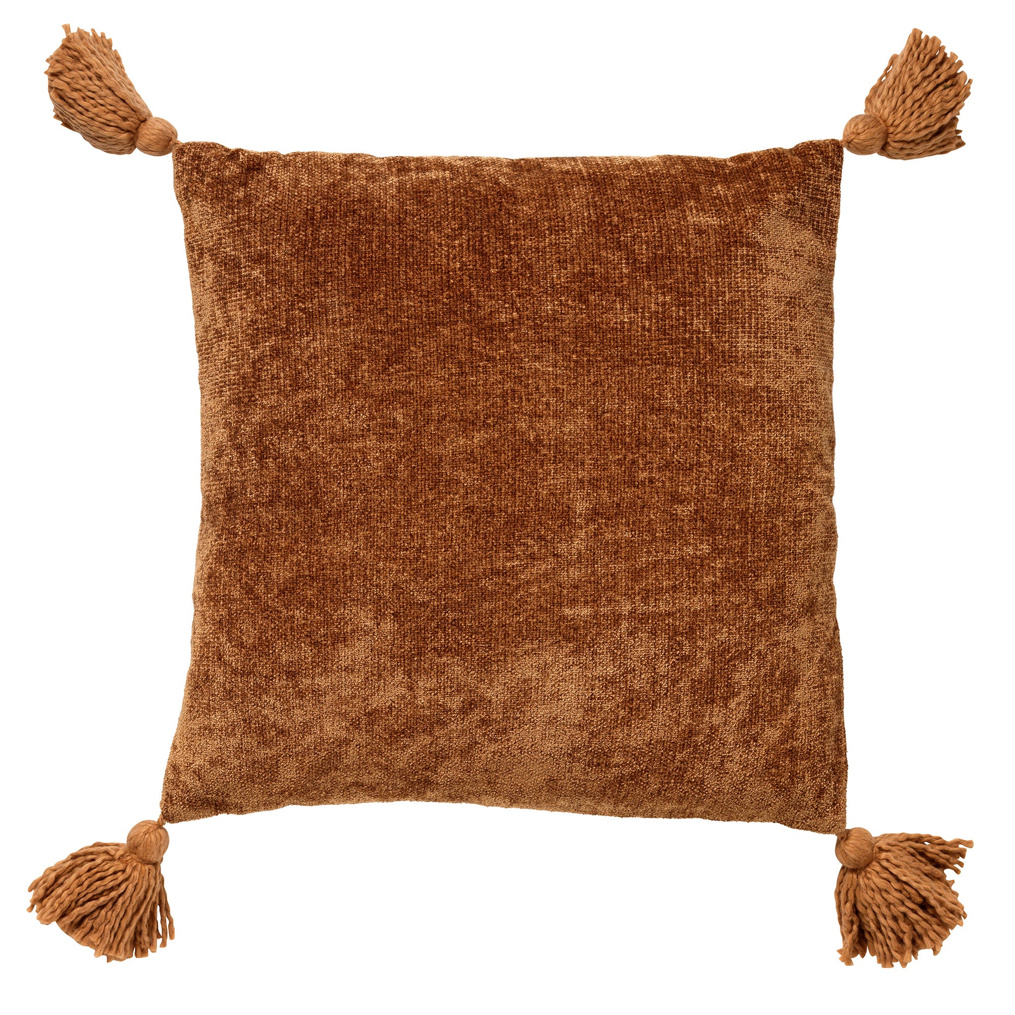 - Effen kussen met kwastjes aan de zijkanten