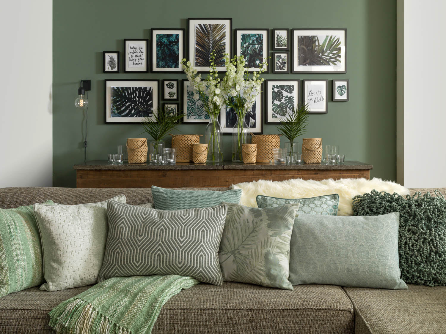 Dutch Decor - OCKER - Sierkussen multi groen 45x45 cm