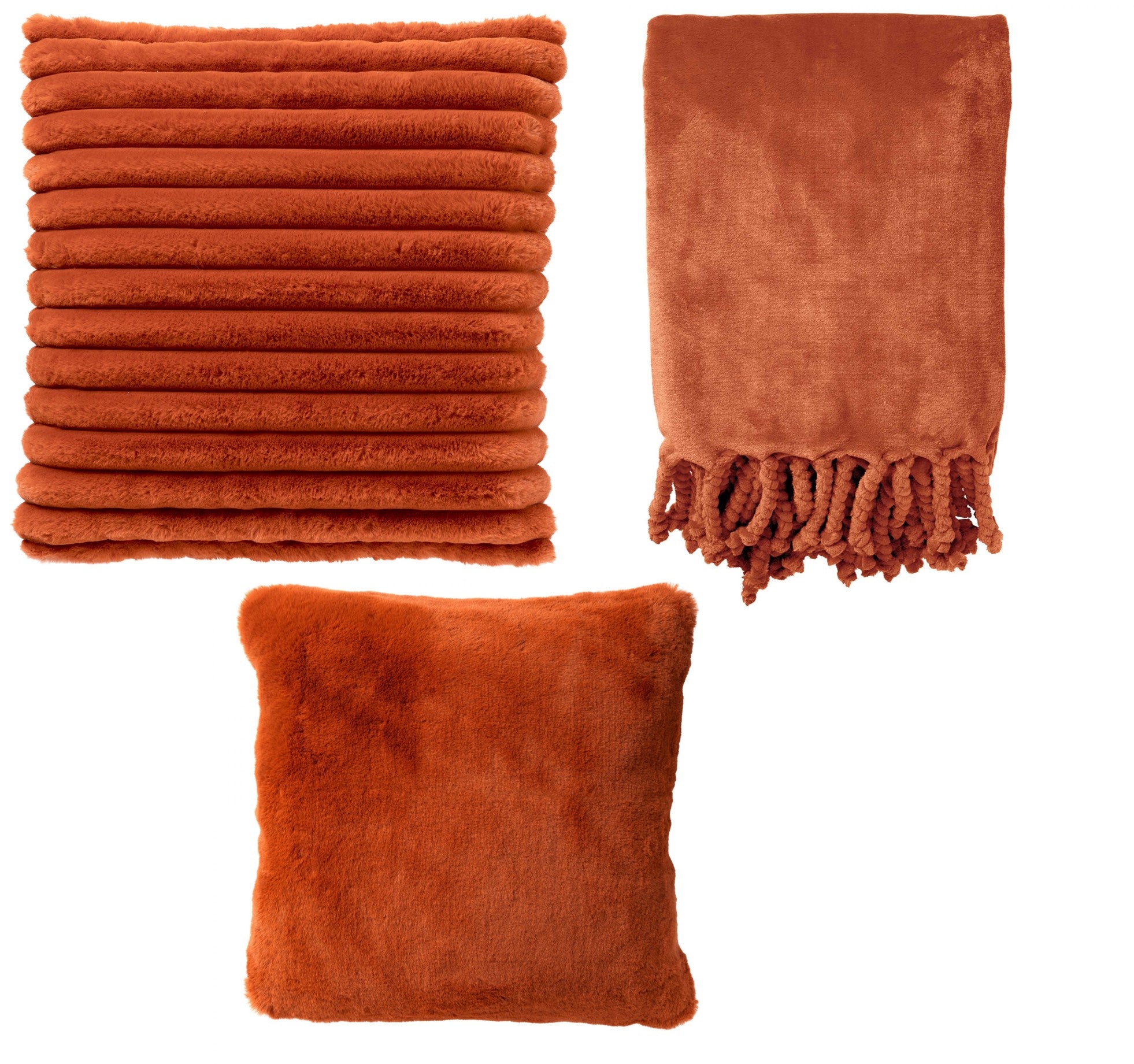 Dutch Decor Sierkussens en plaid - Set van 3 - superzacht - steenrood