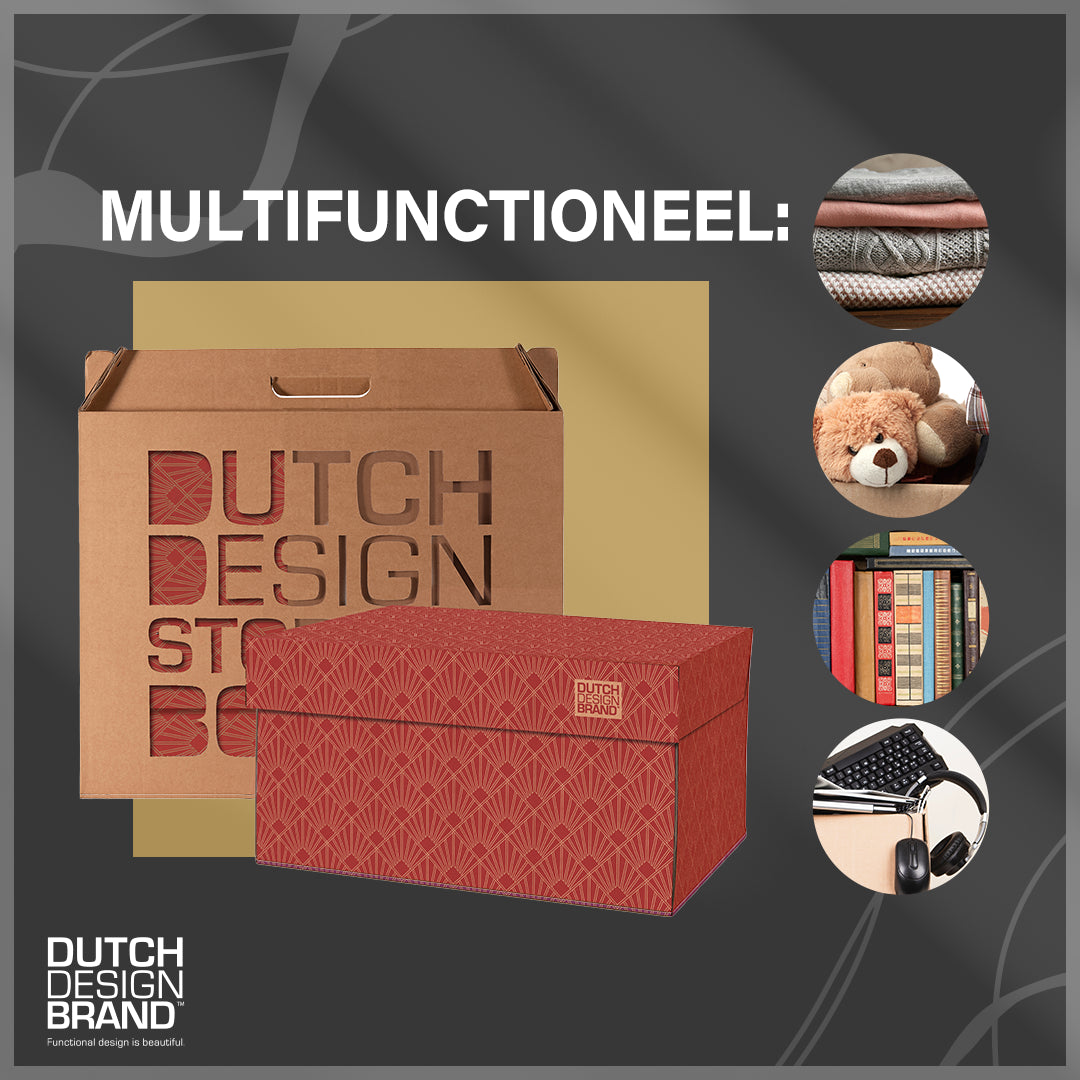 Opruimen wordt een feest met de Dutch Design Storage Box. Maak kennis met het nieuwste product van Dutch Design Brand: de Dutch Design Storage Box. Een doos om spullen in op bergen saai? Niet die van Dutch Design Brand! Ons merk geeft deze manier van opbergen een compleet nieuwe betekenis. De Dutch Design Storage Boxen zijn niet alleen praktisch, maar ook blikvangers in huis. Een handige én stijlvolle accessoire die de complete look en feel van de ruimte opfleurt.