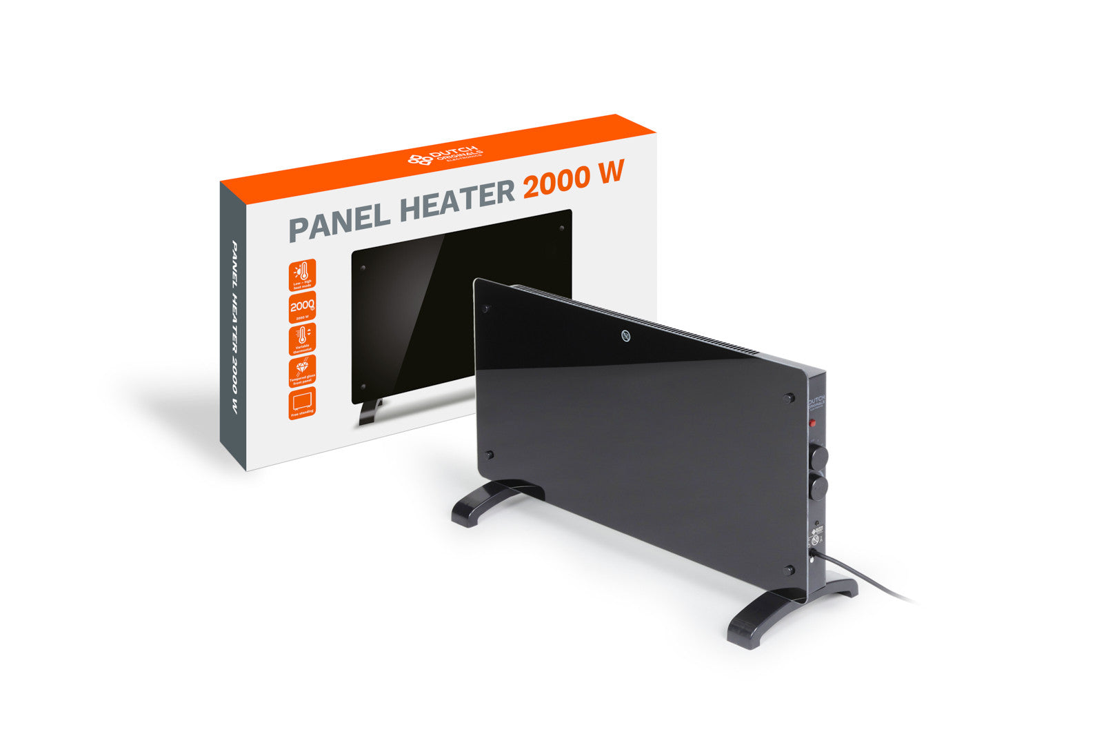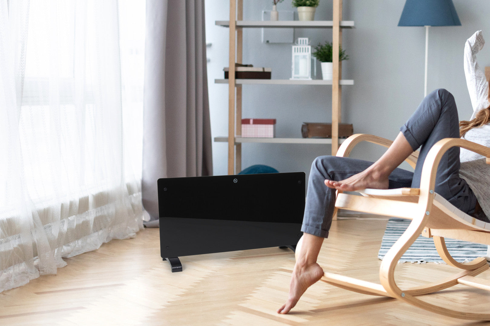 - De convectorkachel is gemaakt van zwart gehard glas en heeft een stabiele voet.