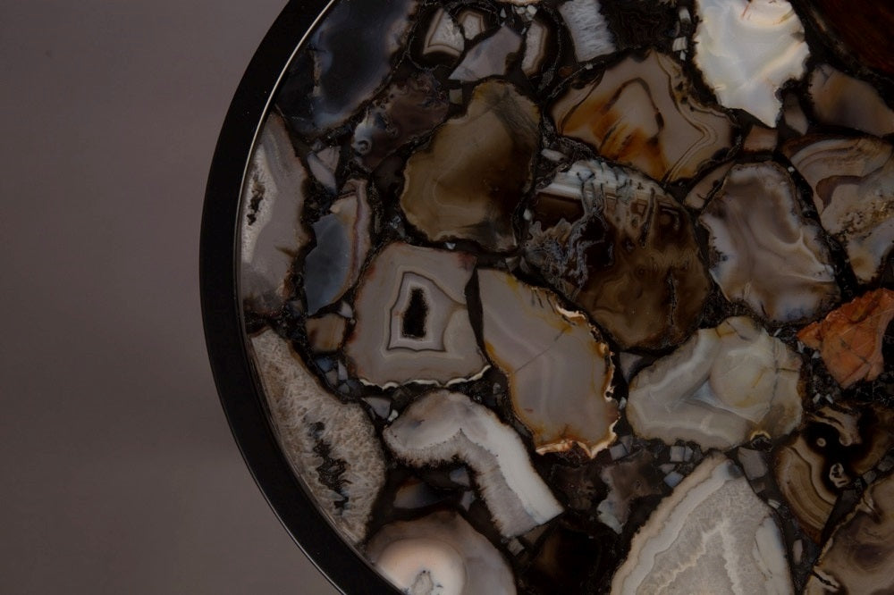 - Het tafelblad is gemaakt van agaat steen en gehard glas