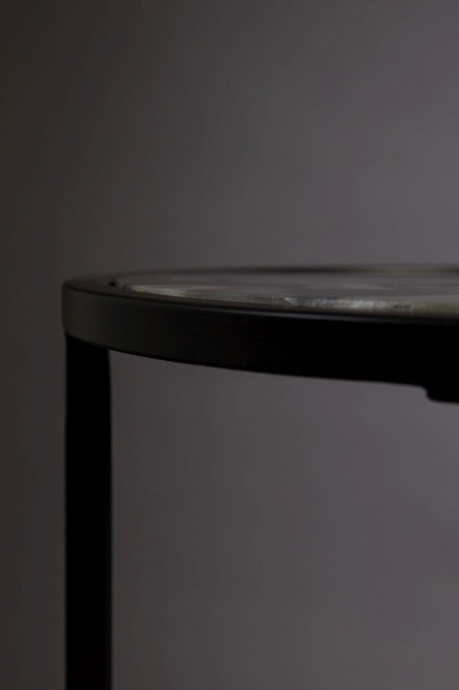Het stevige ijzeren frame zorgt voor een stevige basis van dit mooie tafeltje. Het advies is om het tafelblad alleen af te nemen met een droge doek en gebruik te maken van onderzetters bij (warme) dranken om de tafel mooi te houden.