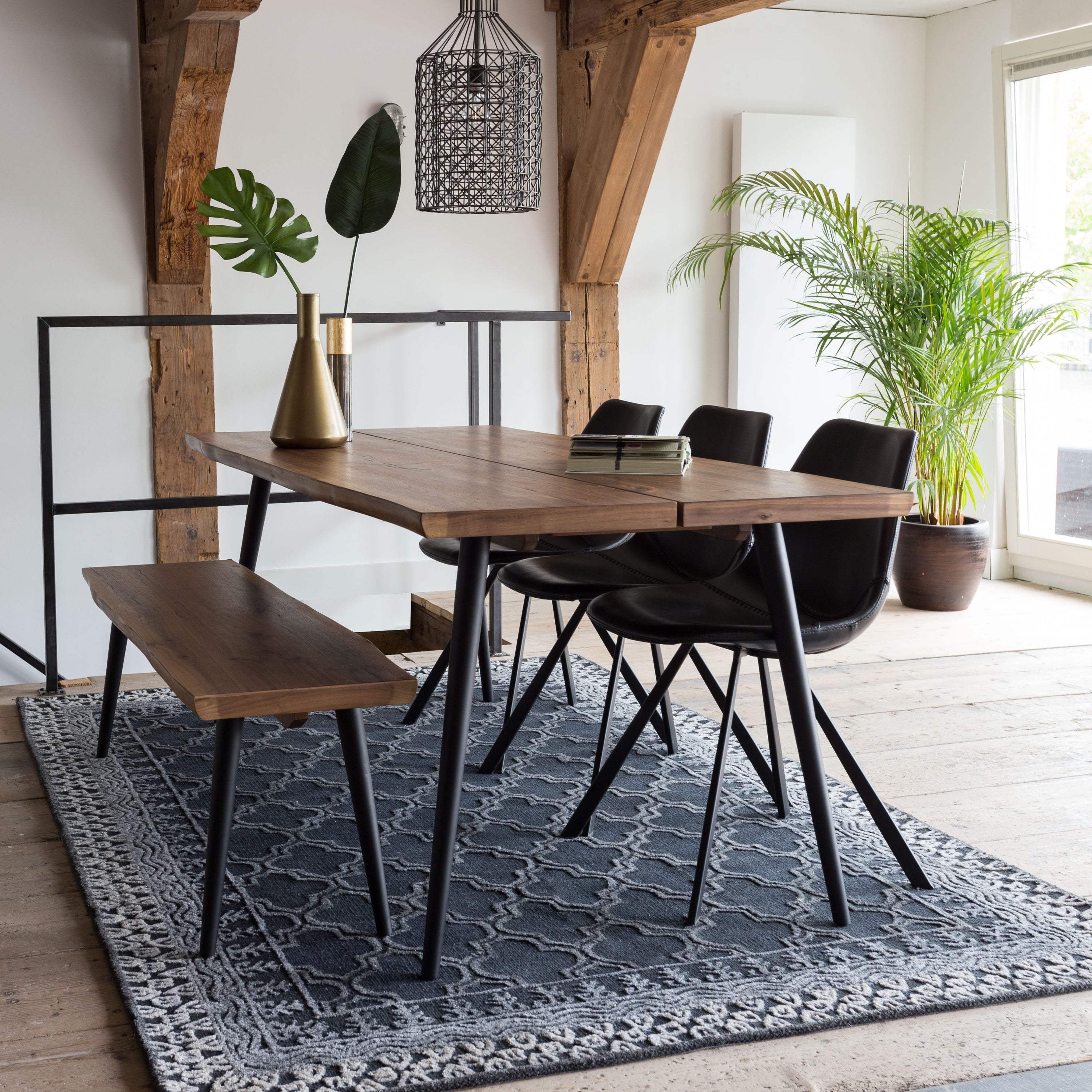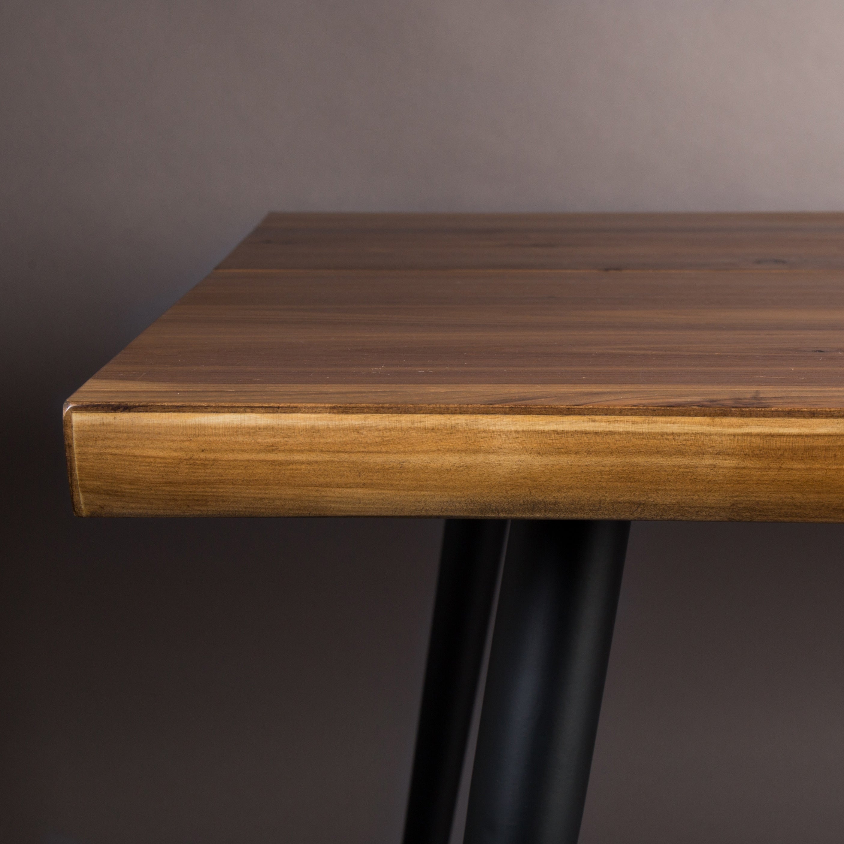 - Het rustieke tafelblad is gemaakt van MDF en walnoothout
