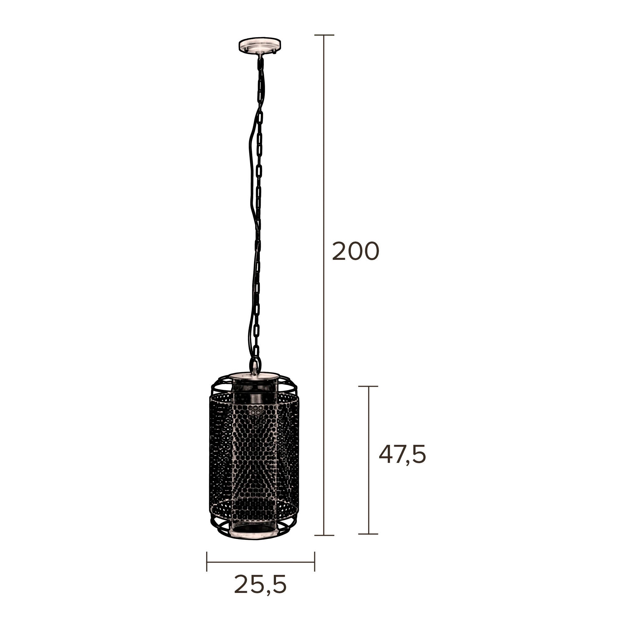 - Een warme hanglamp van H 71 x B 25 x D 25,5 cm