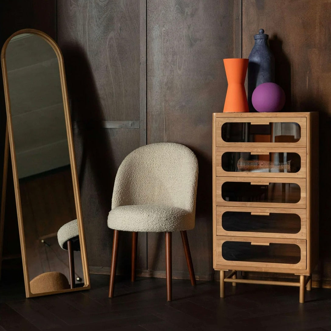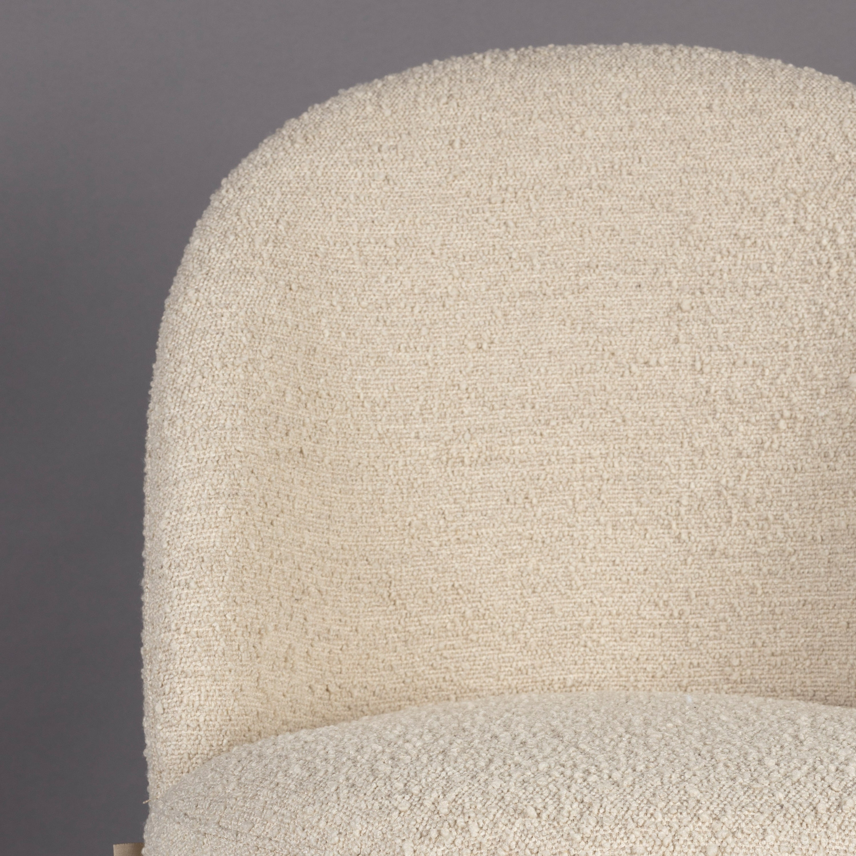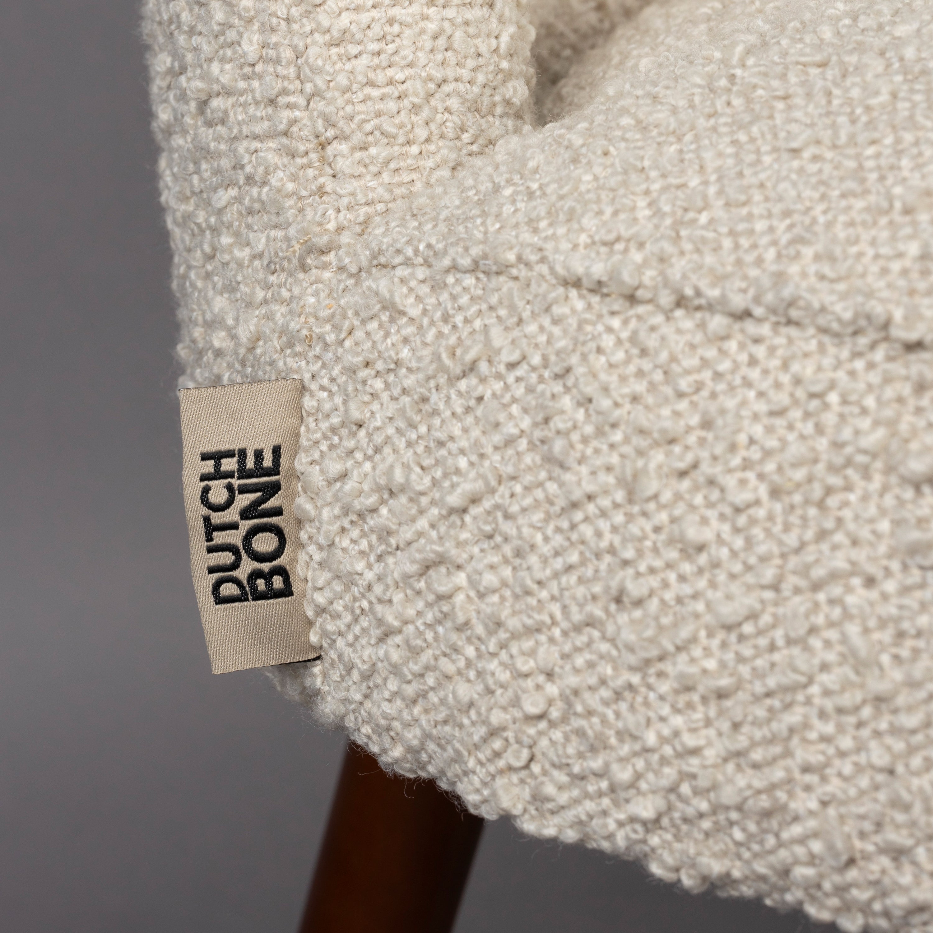 - Aaibaar en hip: hij is bekleed met bouclé stof