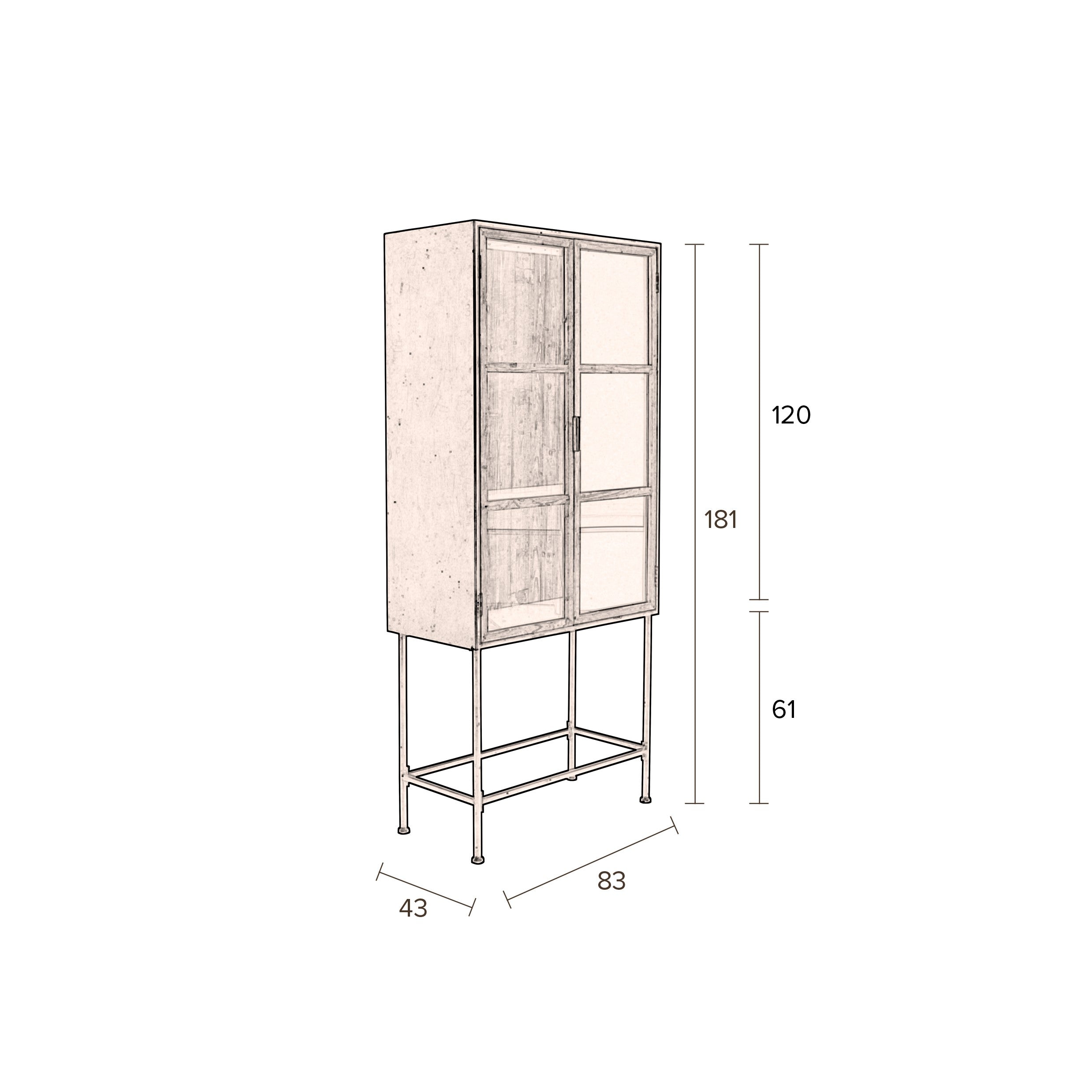 - Stoere vitrinekast van H 181 x B 83 x D 43 cm