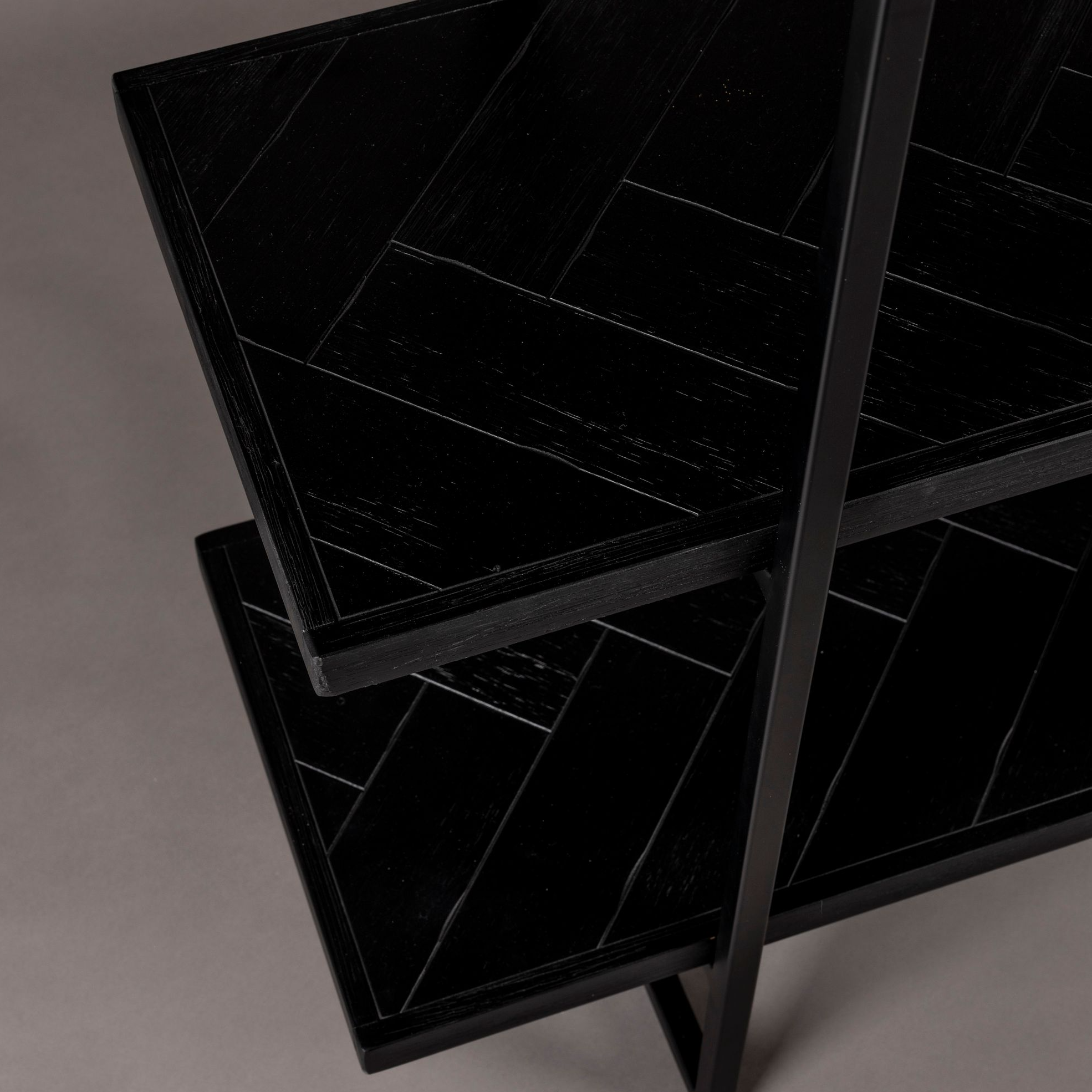 Met de open kast Class van Dutchbone geef je je kamer in één klap klasse! De planken van deze boekenkast hebben een prachtig visgraatmotief in chic zwart. Het zwarte, ranke frame van deze mooie stellingkast heeft een ‘antieke’ afwerking zodat de kast een vintage tintje krijgt.