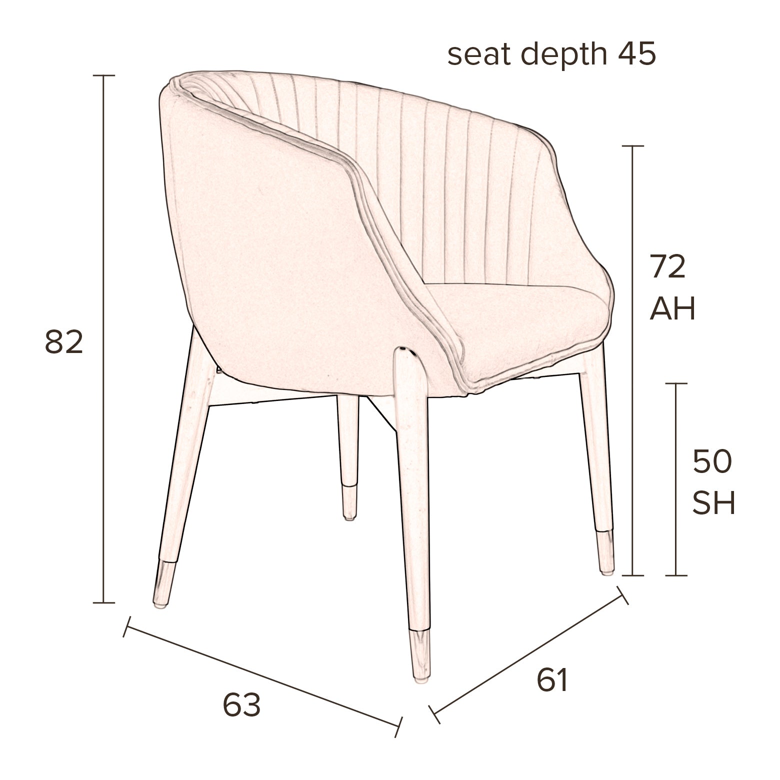 - Past aan jouw eettafel: H 82 x B 61 x D 63 cm
