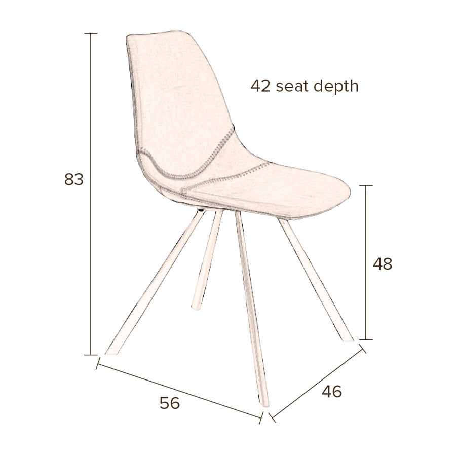 De hoogte van de zitting, gemeten vanaf de vloer. De ideale zithoogte bevindt zich tussen de 40 en 46 cm. Je zit het lekkerst met een ruimte van ongeveer 20 cm, tussen de stoelzitting en de onderkant van het tafelblad.