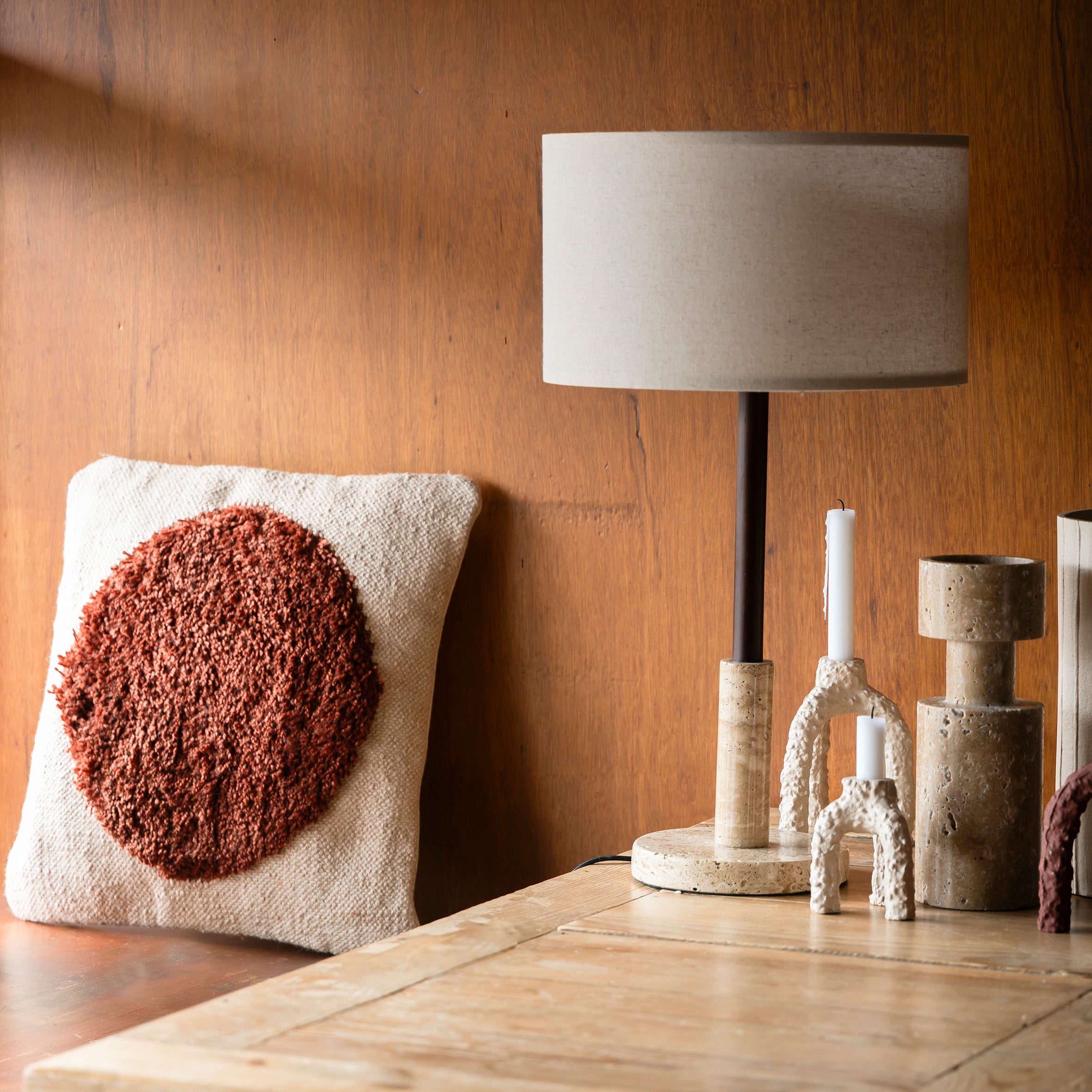 - De linnen lampenkap zorgt voor een sfeervolle lichtverspreiding