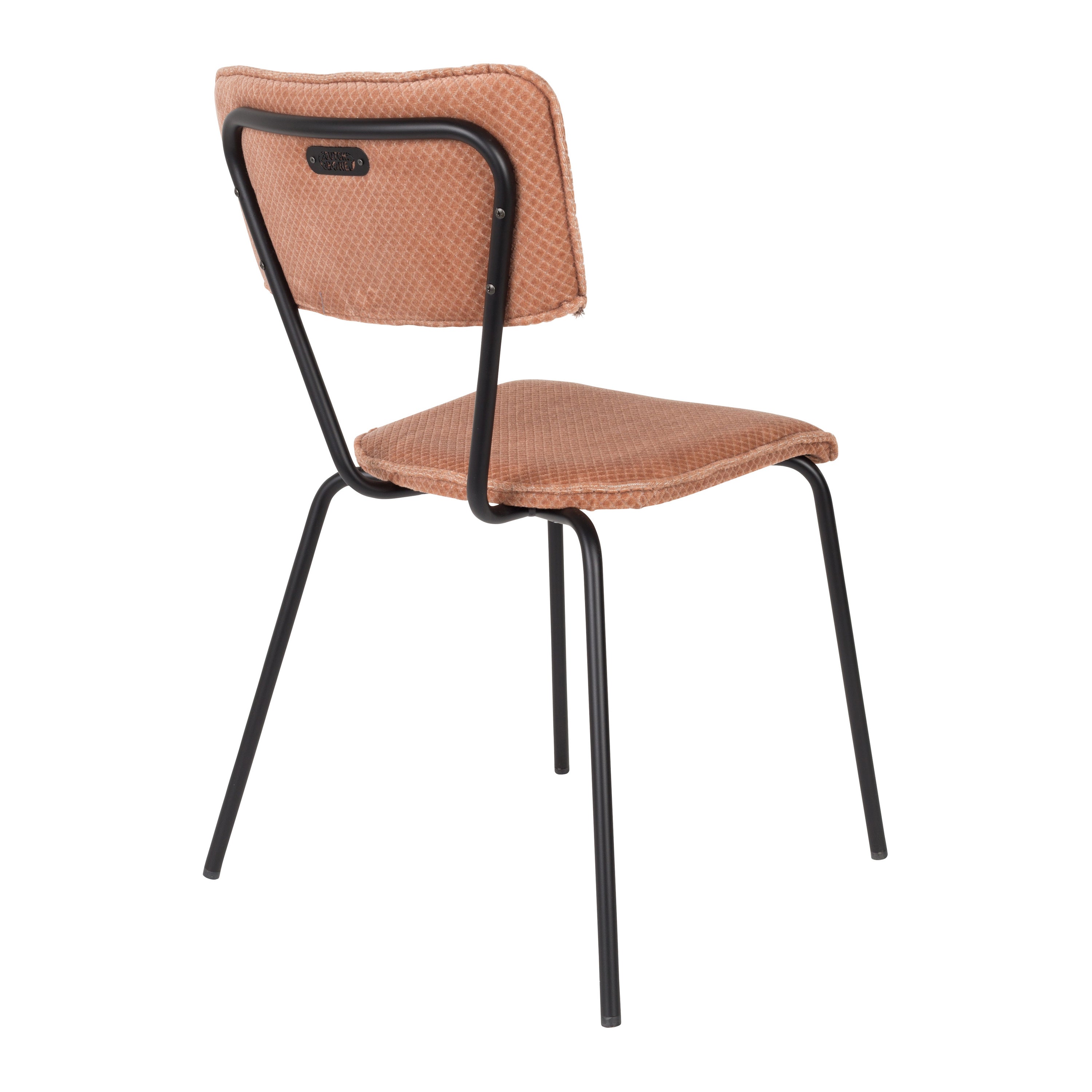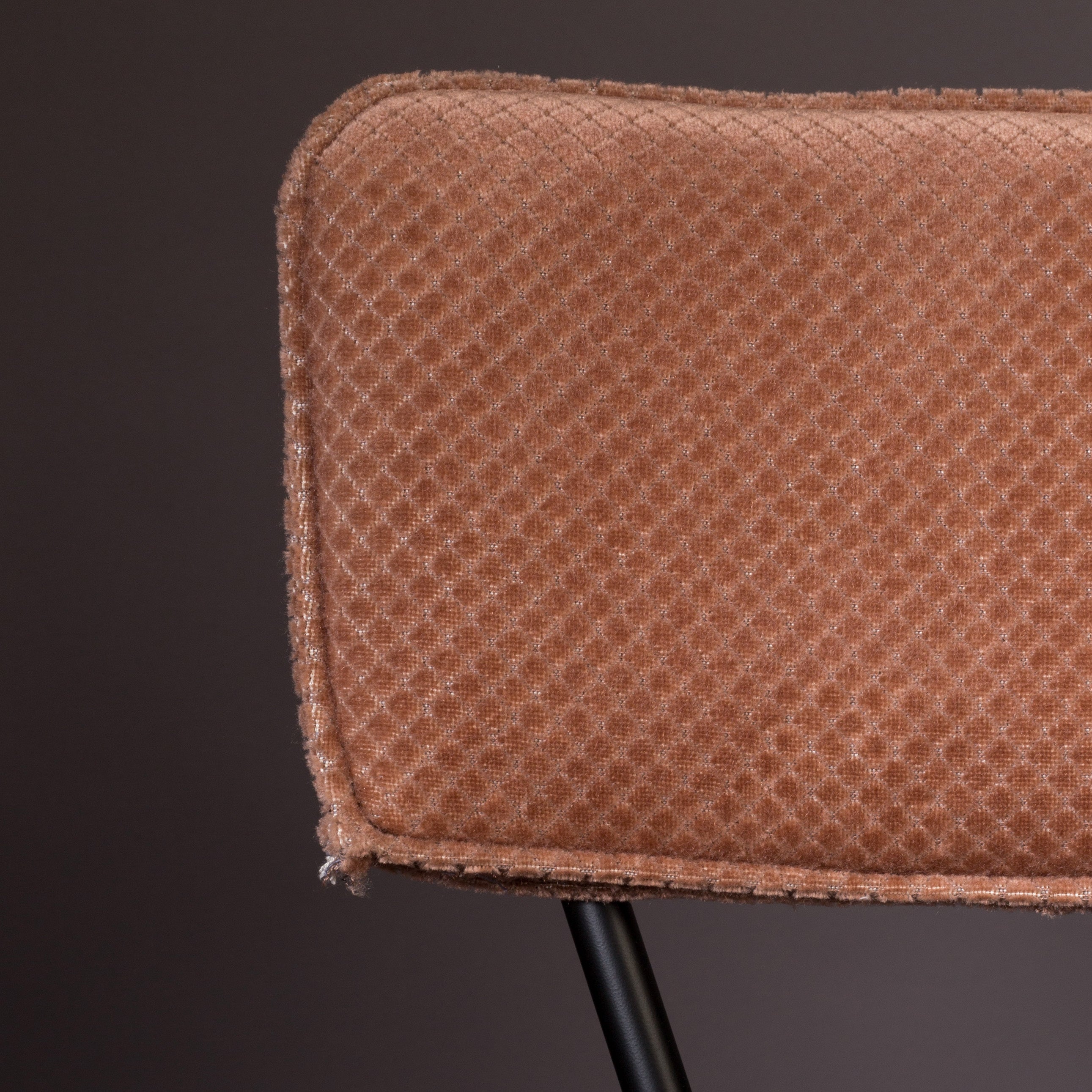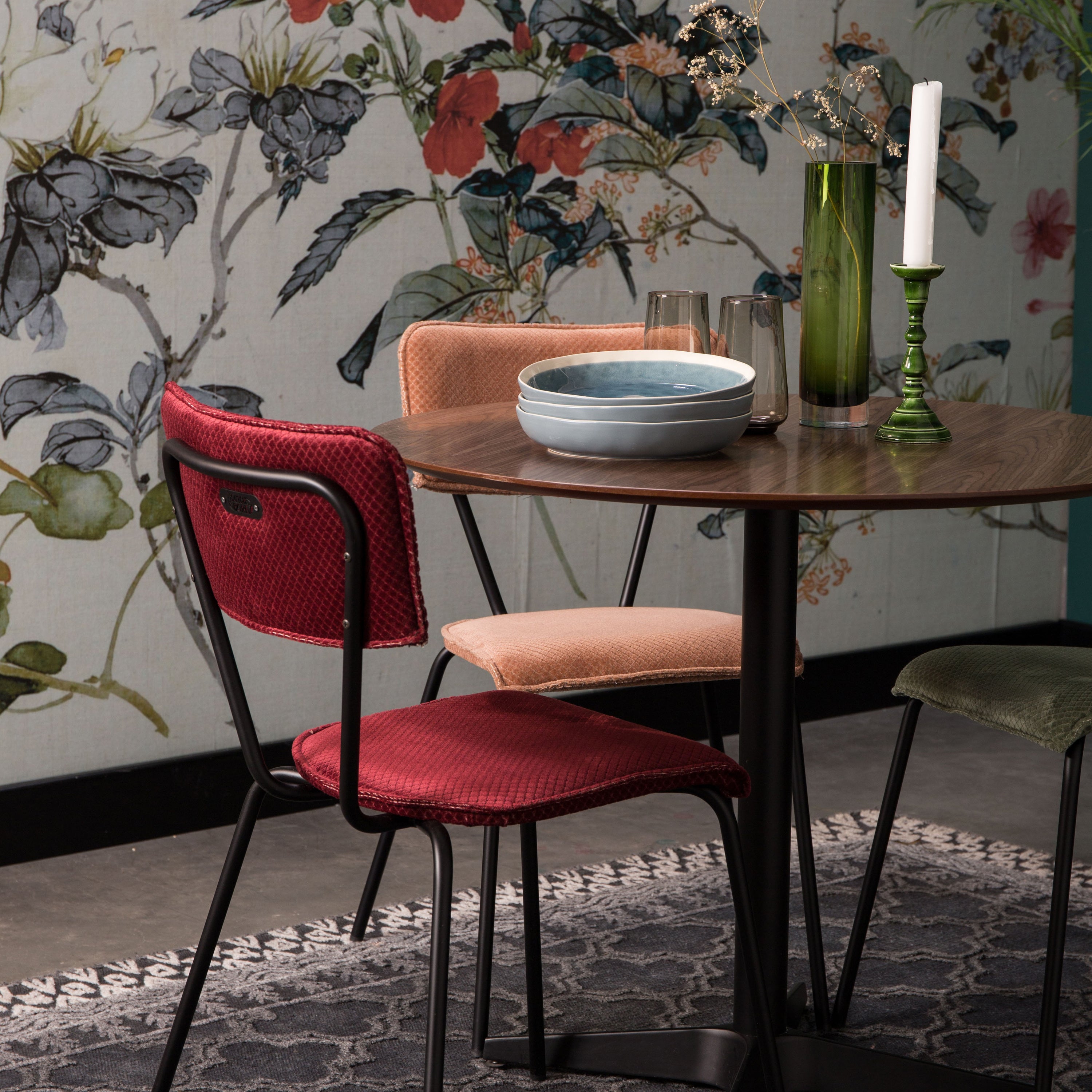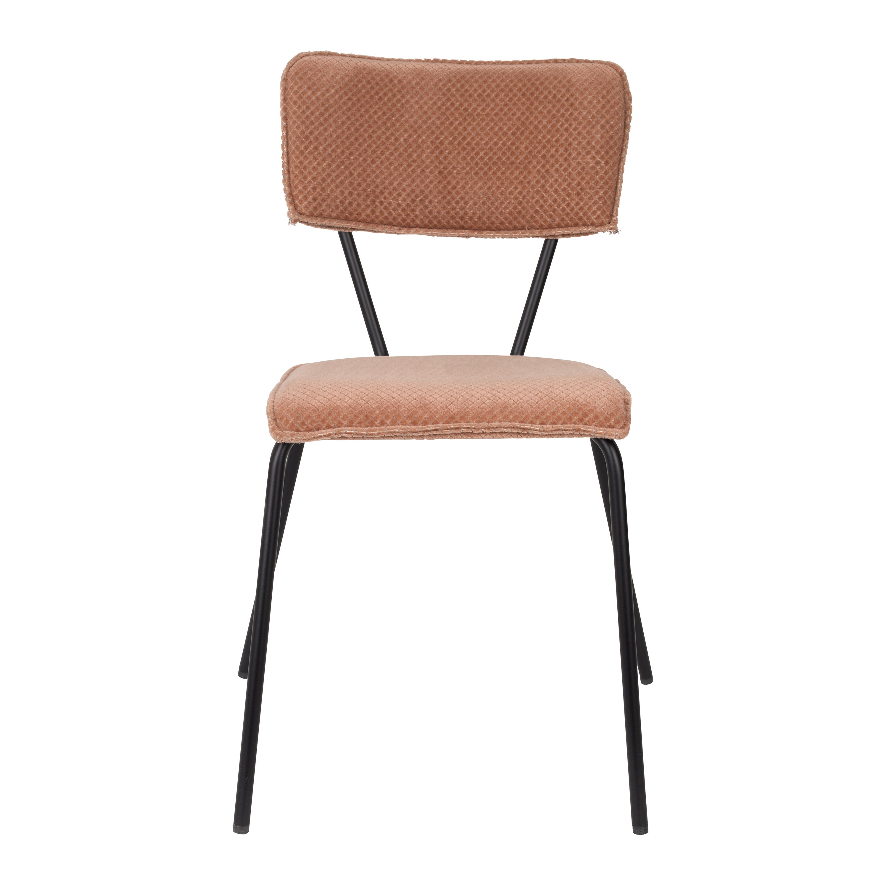 Kenmerken van de Melonie De vintage afwerking van het fluweel valt natuurlijk meteen in de smaak. Daarnaast heeft de Melonie stoel de perfecte zithoogte van 50 cm voor aan de eettafel, ideaal om er meerdere te gebruiken als eetkamerset. De zitting is gevuld met koudschuim voor een extra comfortabele zit en om krassen te voorkomen wordt hij geleverd inclusief kunststof voetdopjes.