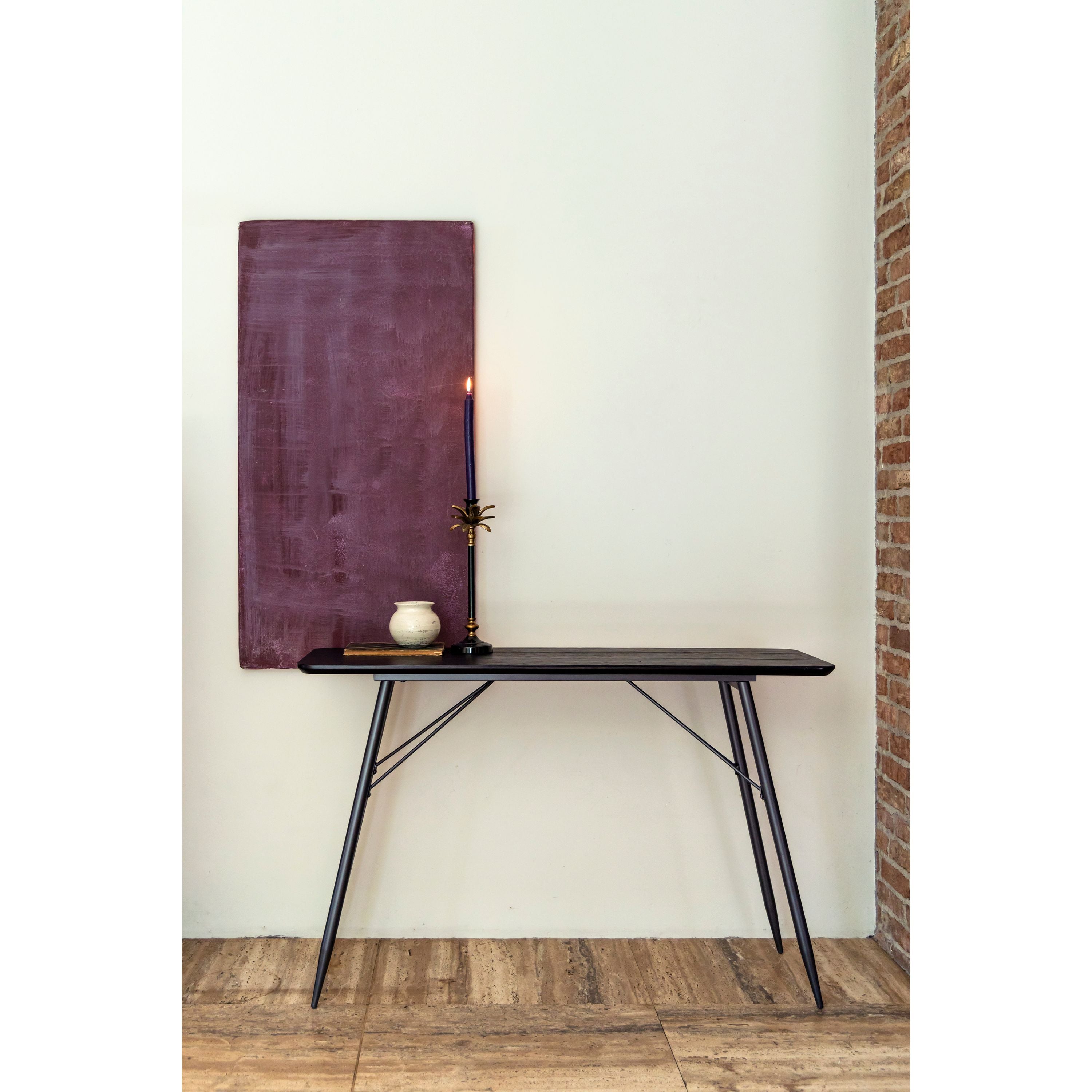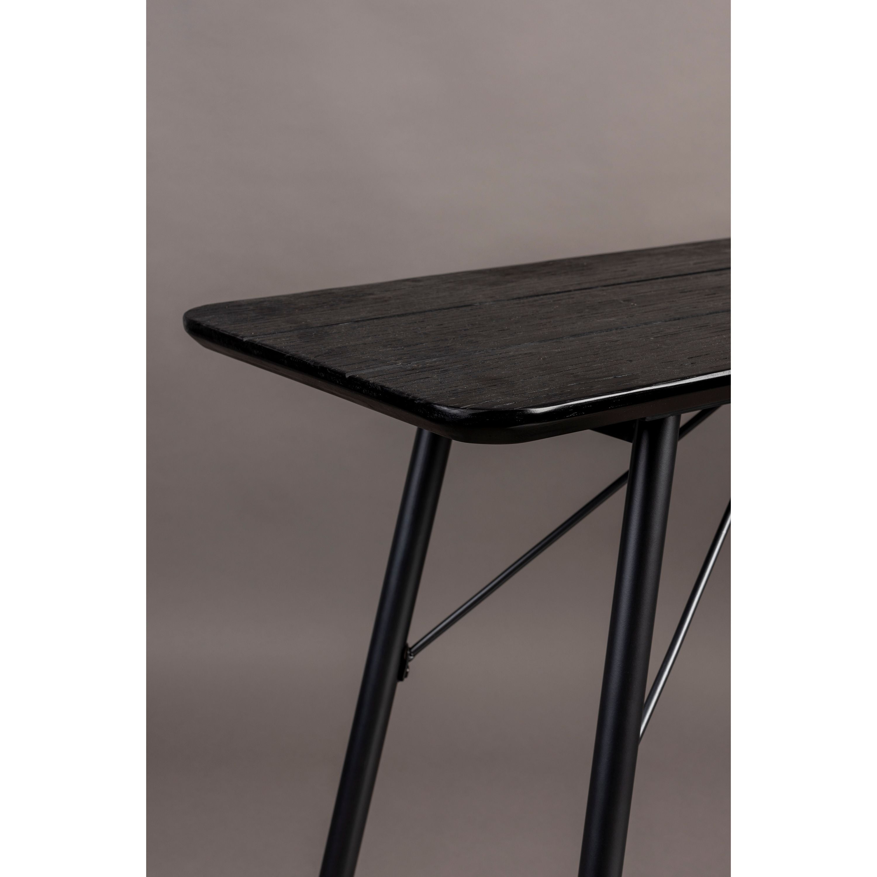 De Roger console van Dutchbone is een industriële tafel die is gemaakt van dennenhout. Roger is verkrijgbaar in de kleuren black en natural en heeft elegante gelakte metalen tafelpoten. De hoeken van het houten tafelblad zijn rond afgewerkt, wat dit ook een elegante tafel maakt.