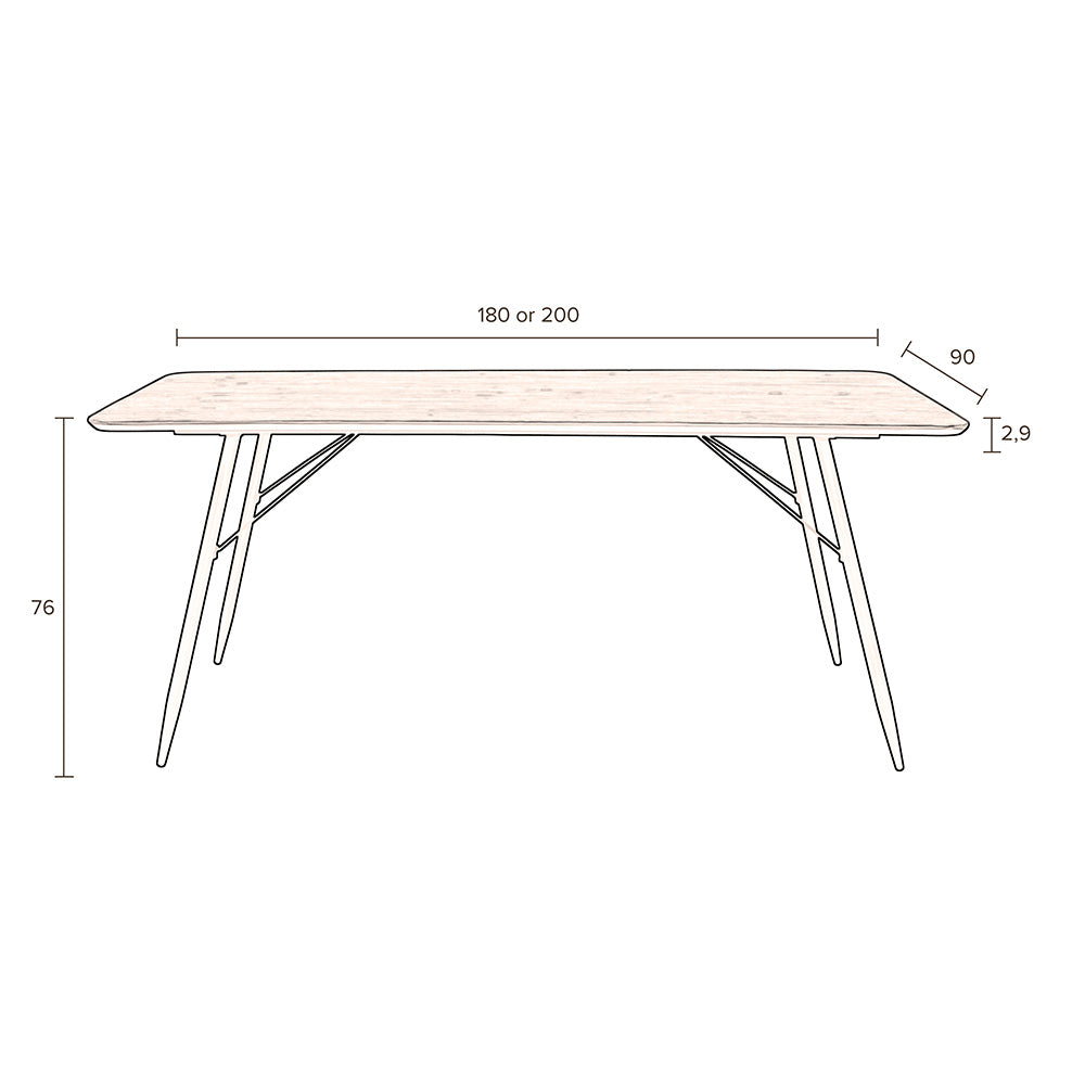 Dutchbone Roger Eettafel - 220 x 90 cm - Zwart