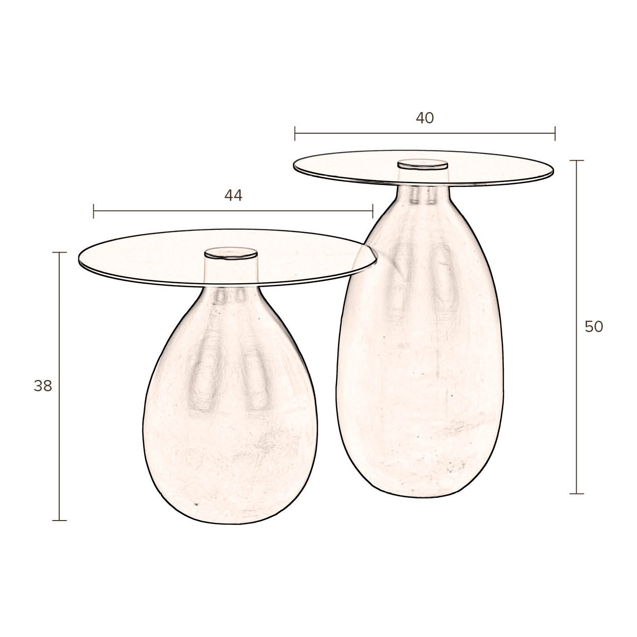 - Bijzettafelset van H 50/38 x B 40/44 x D 40/44 cm