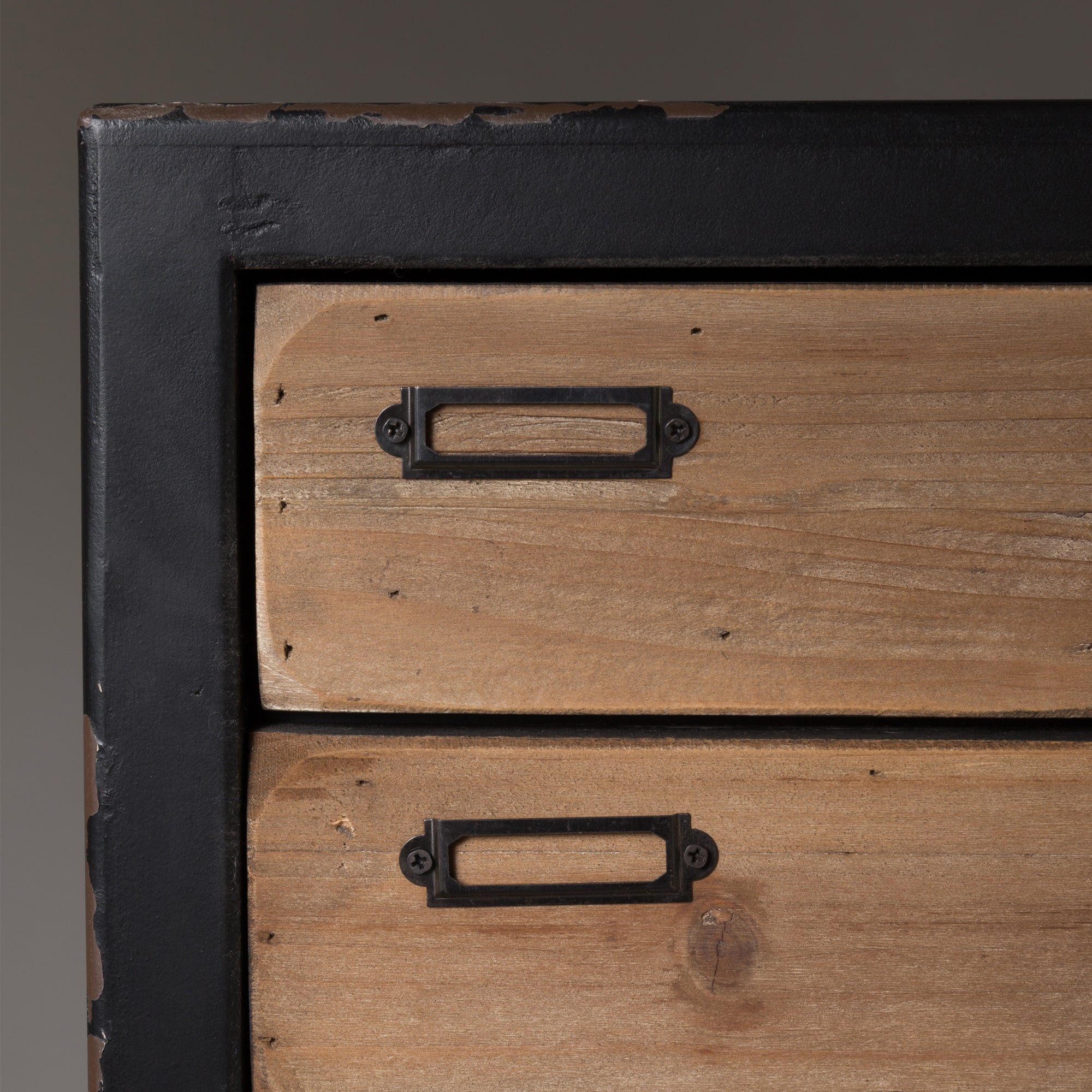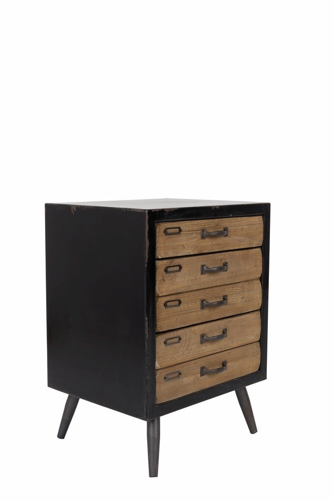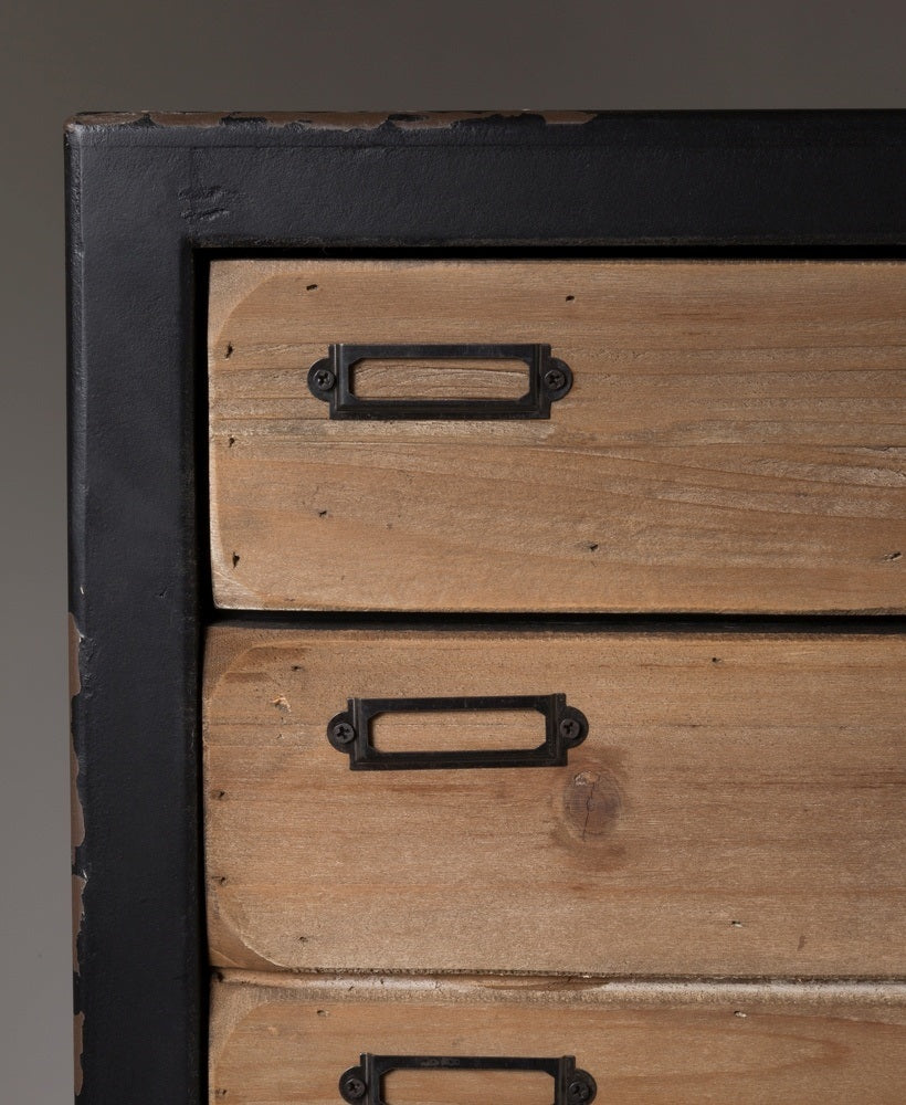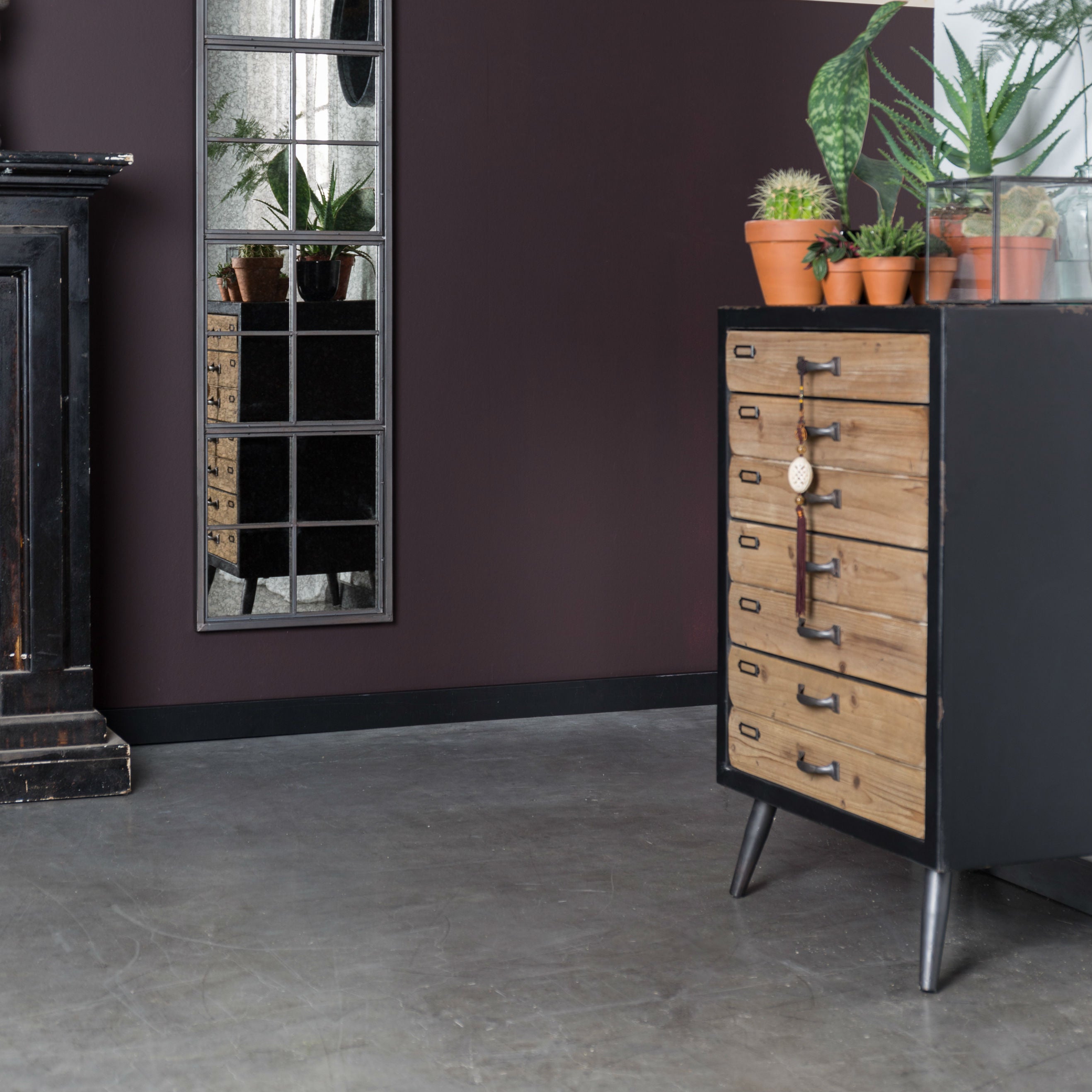 Stoer dressoir De kast heeft een stoere, vintage uitstraling. Dit komt onder andere door de bijzondere manier waarop de metalen coating is aangebracht. Deze heeft een verweerde, damaged look. Waar zet jij hem neer?