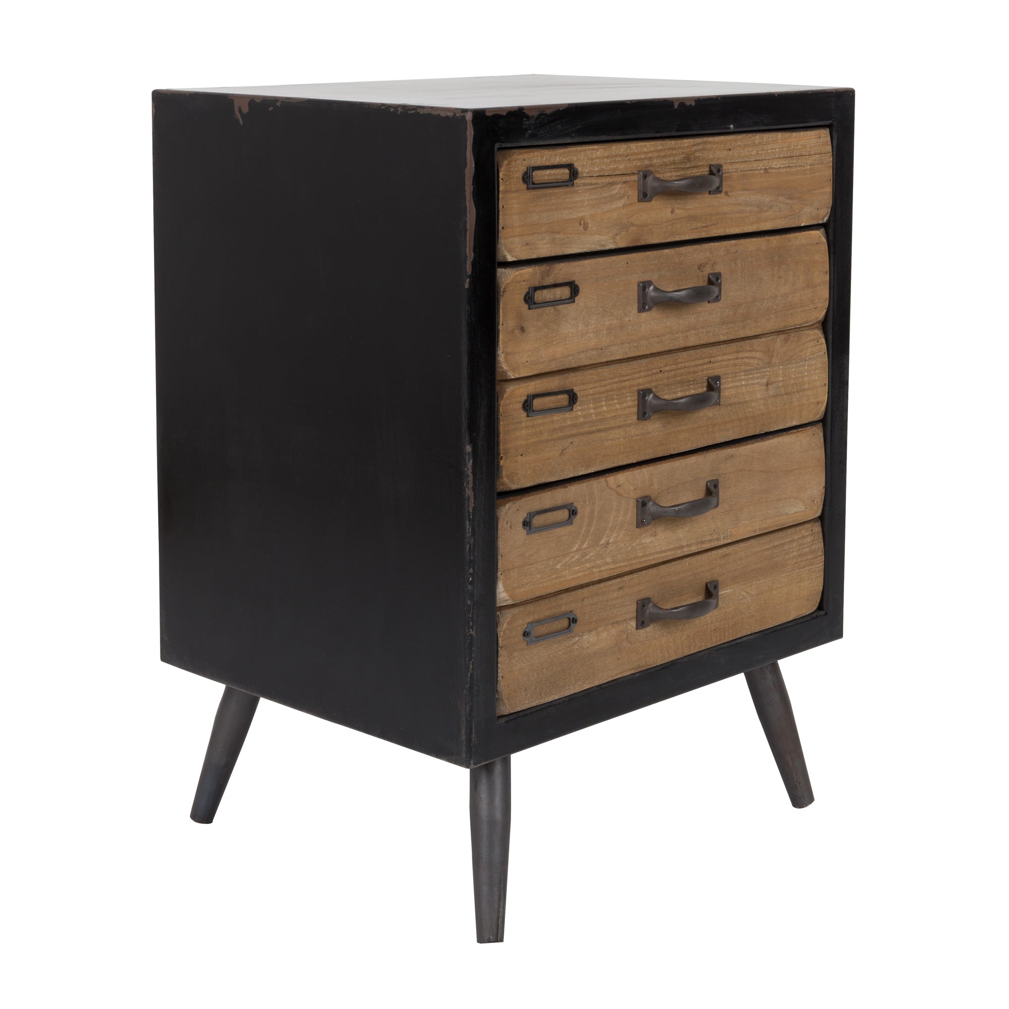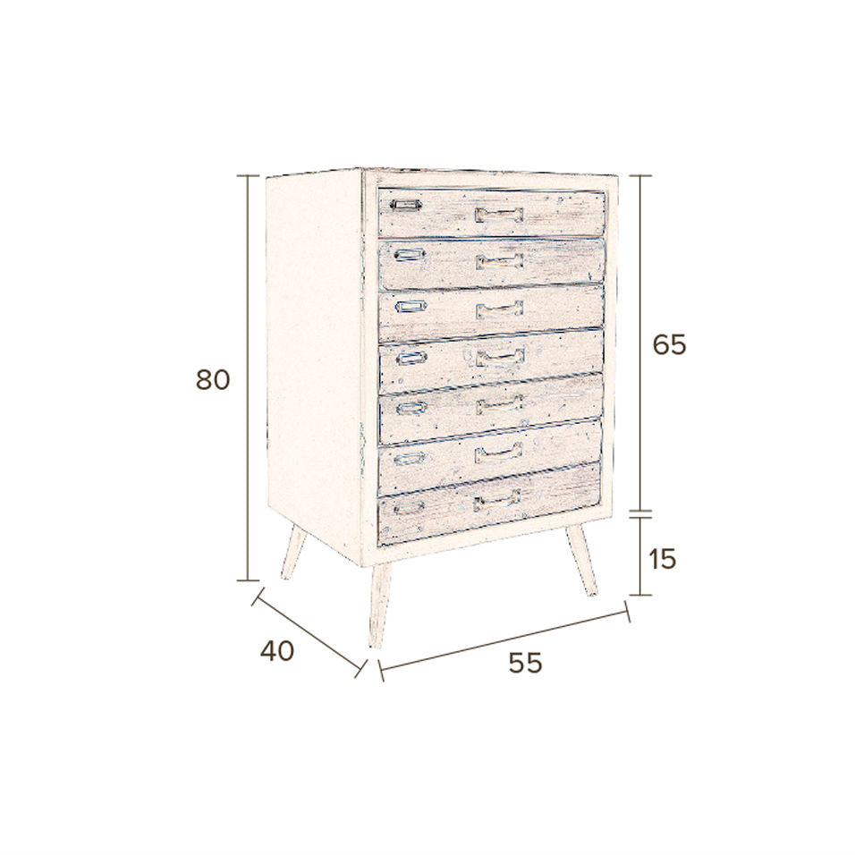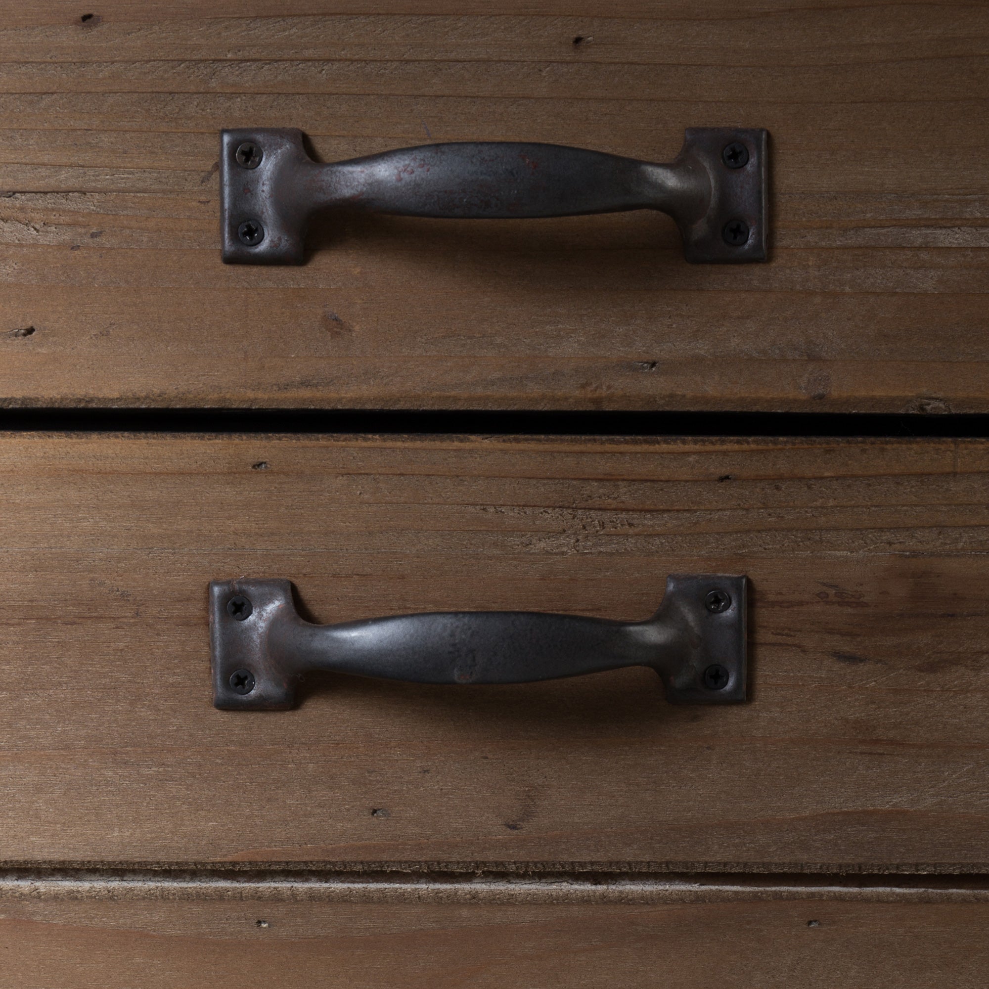 Stoer dressoir De kast heeft een stoere, vintage uitstraling. Dit komt onder andere door de bijzondere manier waarop de metalen coating is aangebracht. Deze heeft een verweerde, damaged look. Waar zet jij hem neer?