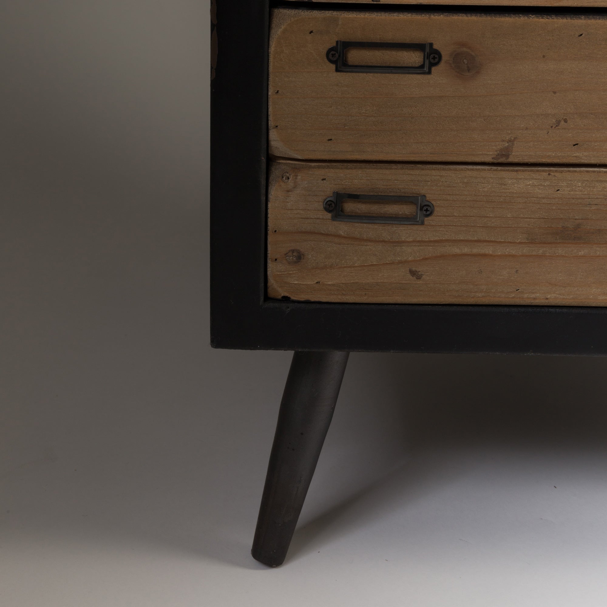 - De kast heeft 2 grote (dubbele) lades en 1 kleine lade bovenaan
