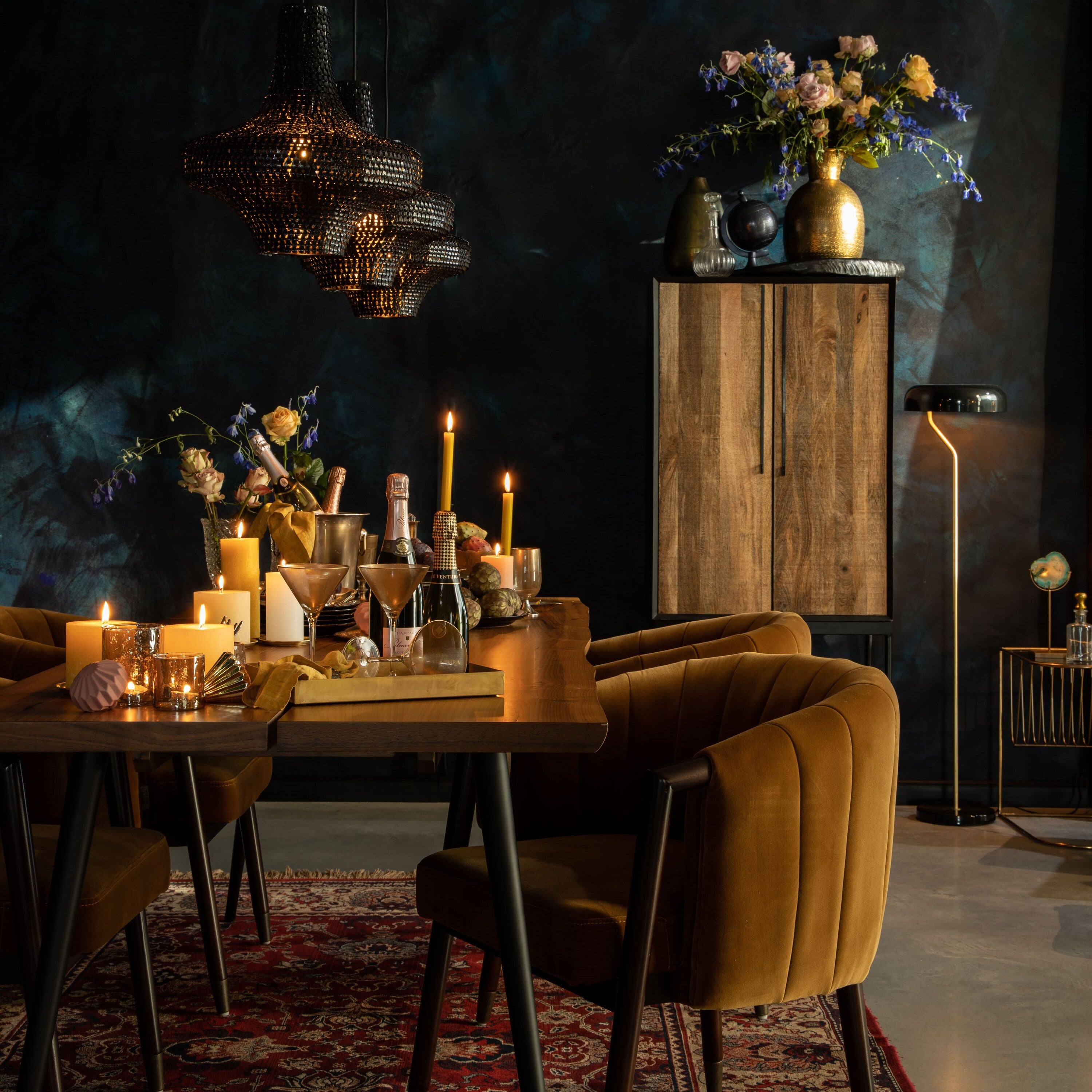 - De fluwelen zitting geeft de stoel een luxe uitstraling