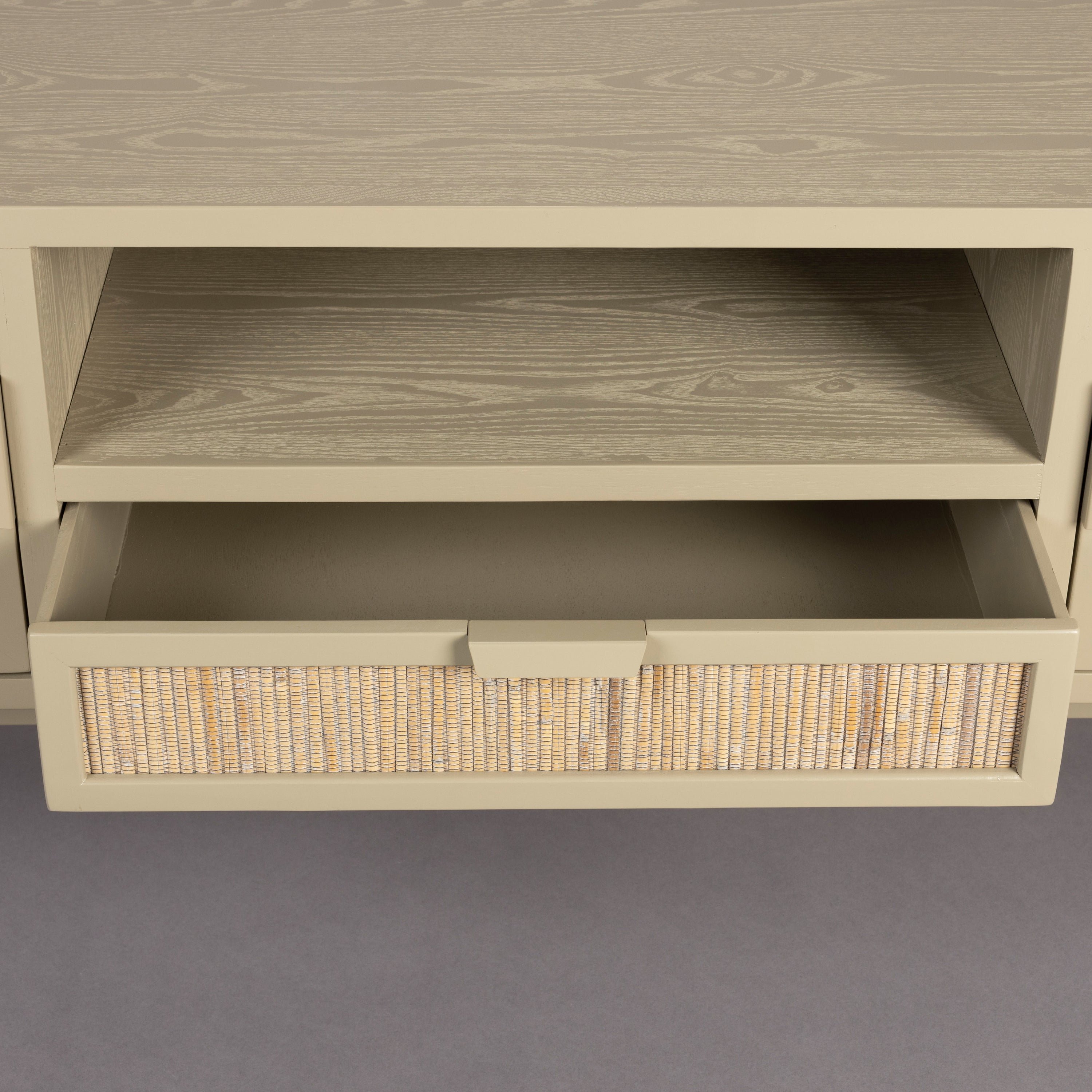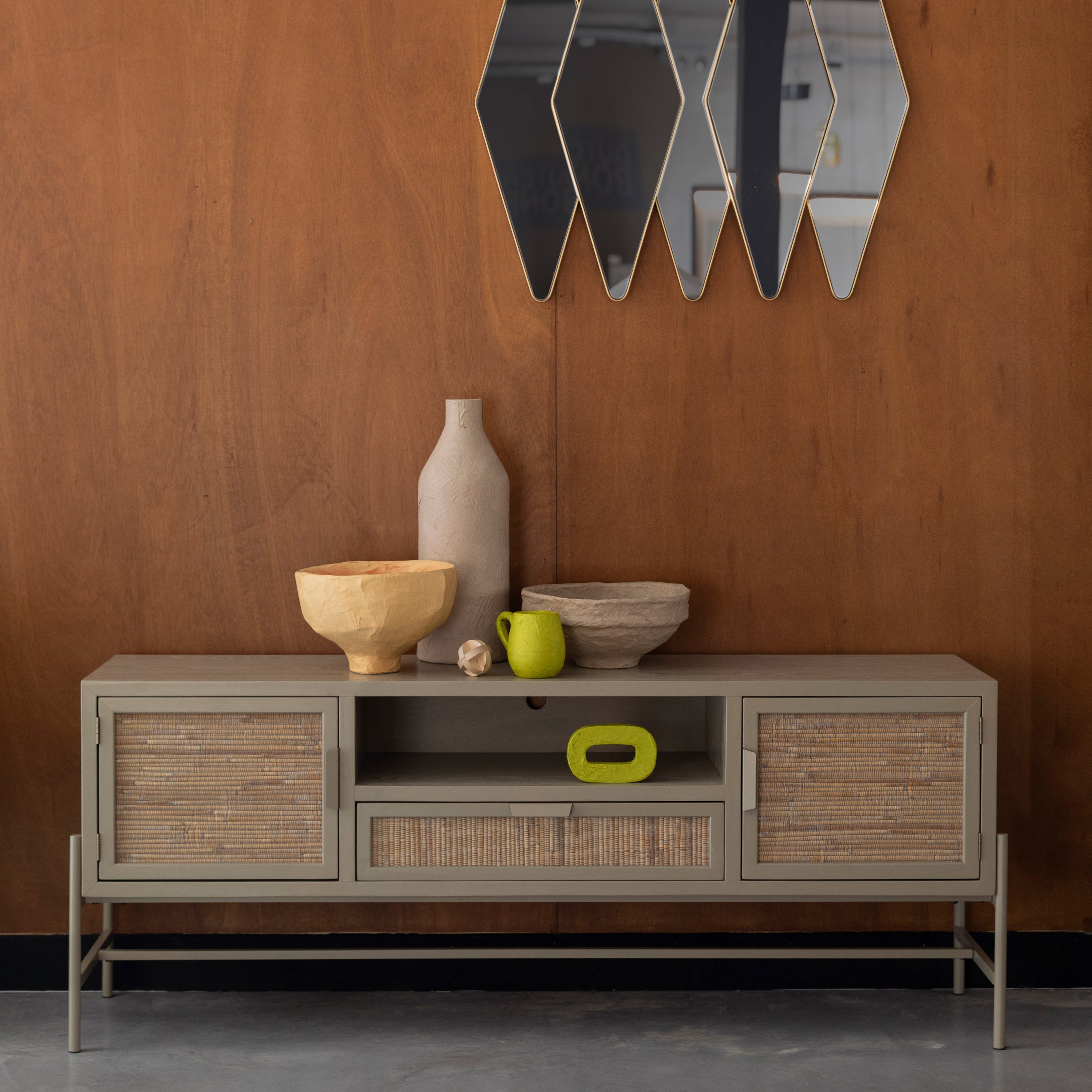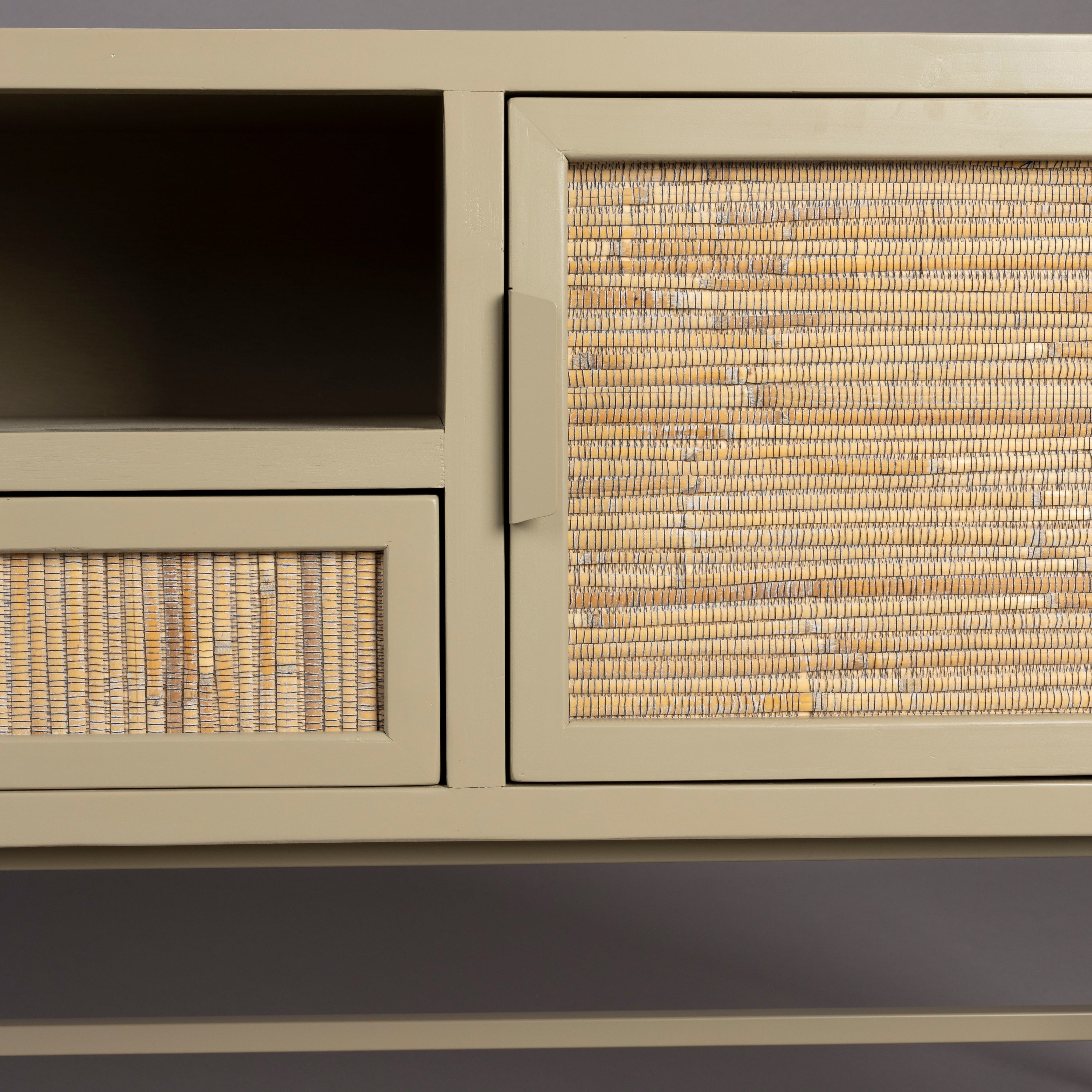- Voldoende ruimte; achter de openslaande rotan deuren kun je alles kwijt
