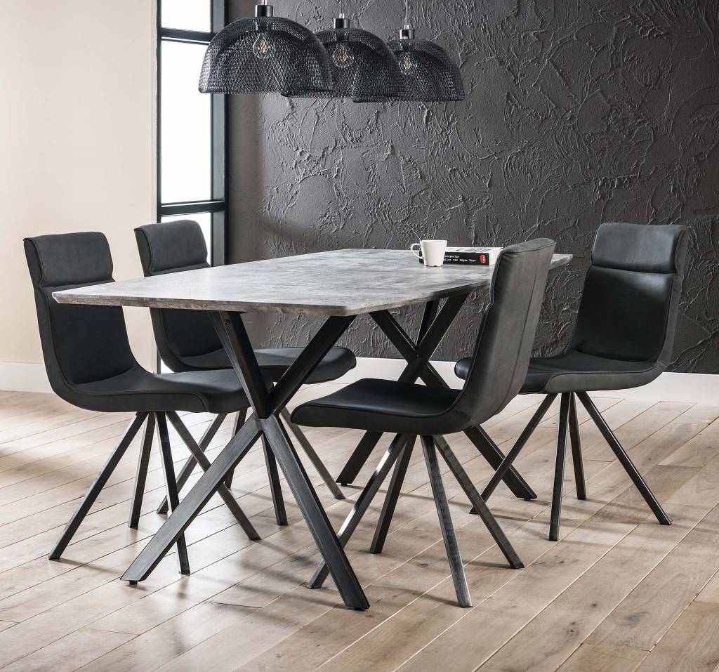 Optisch dunne blad Deze eetkamertafel is uitgevoerd in een ovaal MDF-blad met een toffe 3D betonlook. Het speelse frame is uitgevoerd in zwart gepoedercoat staal en zorgt voor een industrieel karakter onder dit optisch dunne blad. De tafel is 190 centimeter lang. Er is ook eenzelfde soort tafel beschikbaar met een lengte van 160 centimeter.