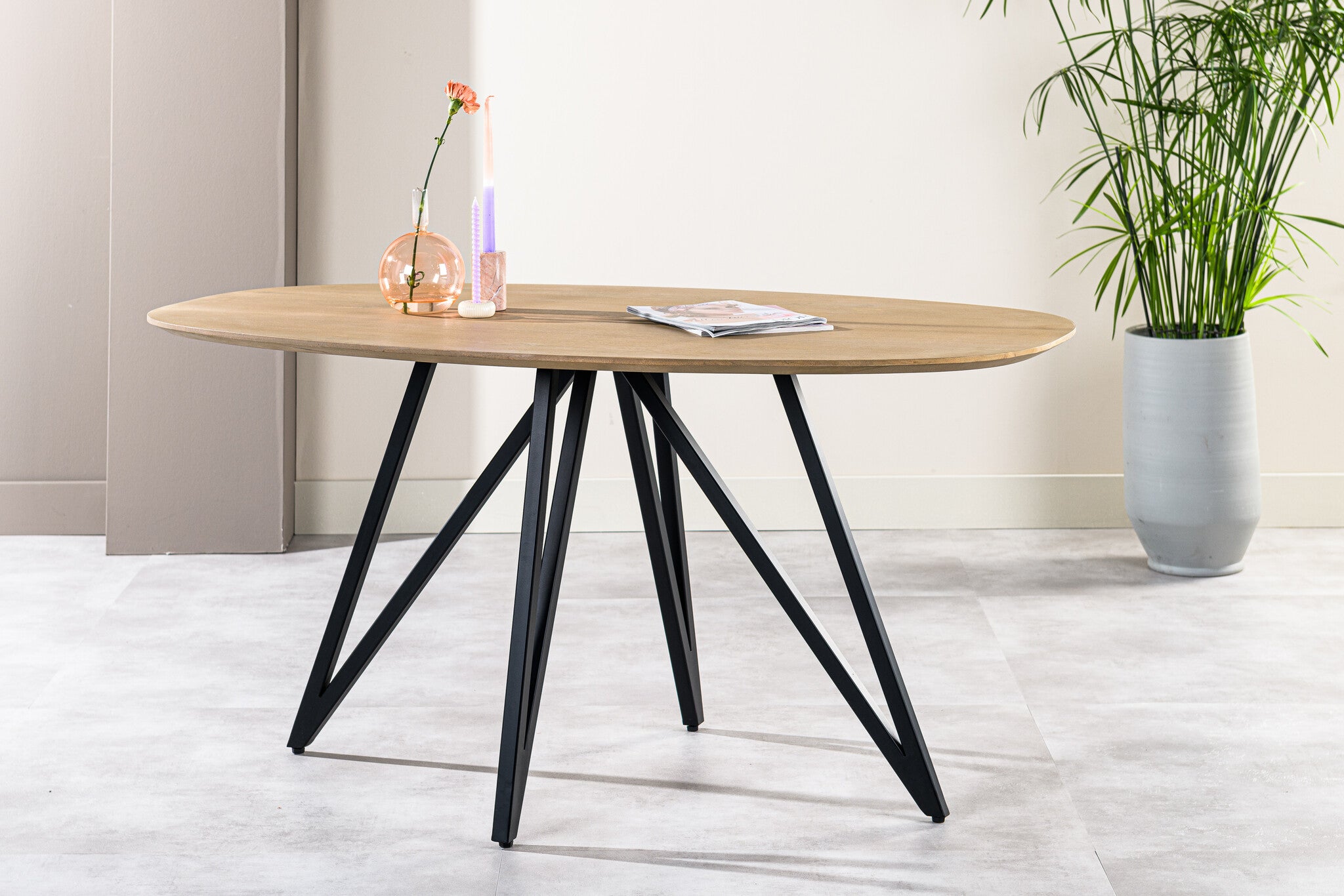 Nordic Design - Eettafel - acacia - naturel - ovaal - 160x90 cm - vlinder poot - staal - zwart