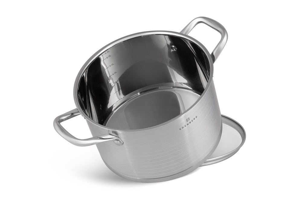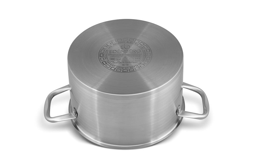 Prachtige 12-delige pannenset van hoge kwaliteit. Een set gemaakt van hoogwaardig roestvrij staal. Product gerenommeerde merk Edënbërg . Dankzij de speciale bodem wordt de warmte snel verdeeld, waardoor je energie bespaart. In de pan zit een praktische maataanduiding voor gebruiksgemak. Praktische profiel van de rand van de pannen om morsen van vloeistoffen tijdens het koken te voorkomen. De pannen hebben geklonken handvatten. U kunt de pannenset veilig gebruiken in een afwasmachine. De pannen zijn geschikt voor alle warmtebronnen: elektrisch, gas, keramisch, halogeen en inductie. De uitgebreide set is ideaal voor de starter maar ook voor de ervaren kok ter vervanging of aanvulling van de huidige pannen. Of je nou een verse saus wilt bereiden of de groenten koken wilt koken, het kan allemaal op een gemakkelijk wijze zonder aankoeken en moeilijk schoonmaken. Belangrijkste kenmerken :