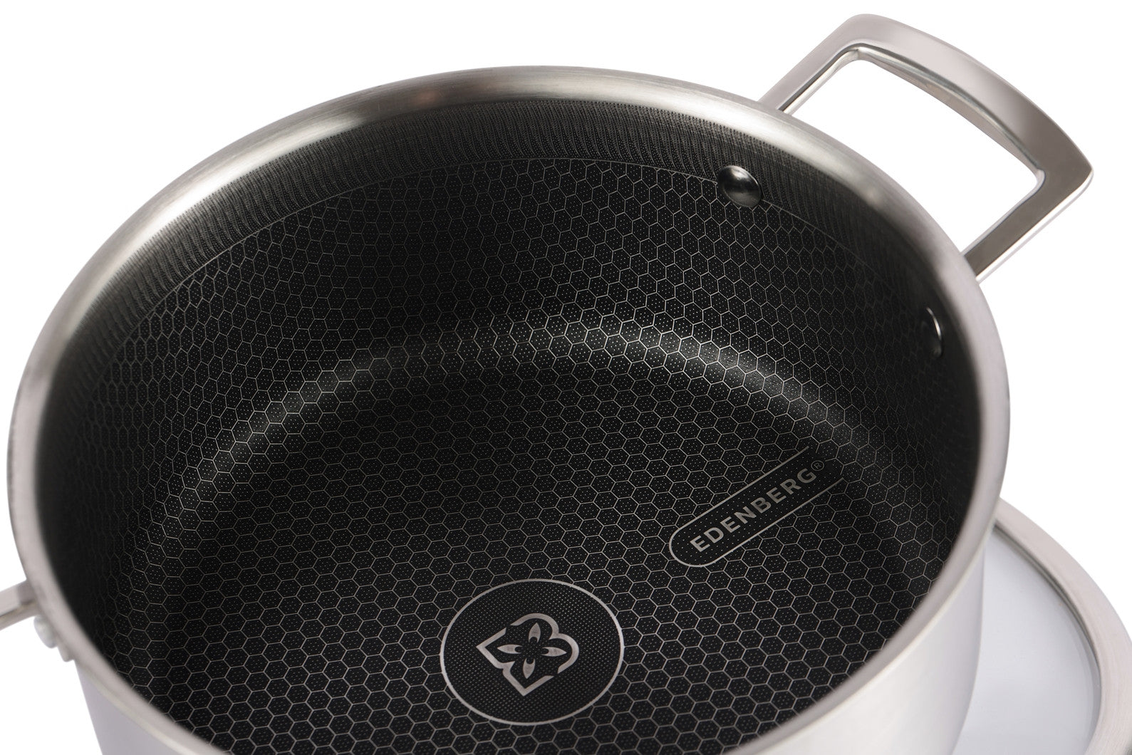 Deze Edënbërg kookpan met een diameter van 22 cm is krasbestendig en heeft een antiaanbaklaag. Dankzij de geavanceerde coating met marmer effect bakken je gerechten in de pannen van Edënbërg absoluut niet aan en ze zijn ook nog eens razendsnel schoon. De antiaanbaklaag is zo effectief dat je bijna geen olie of boter hoeft te gebruiken, waardoor je gezondere maaltijden op tafel zet. De coating is krasbestendig en uiterst duurzaam. Bovendien zorgt de coating voor betere geleiding, met als resultaat een perfect, gelijkmatig gegaard gerecht. De pan is geschikt voor gas, inductie, elektrisch en keramische warmtebronnen.
