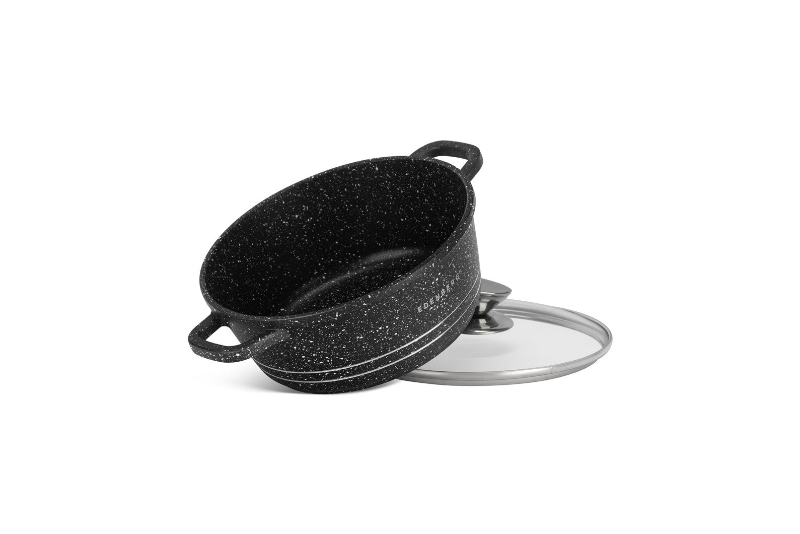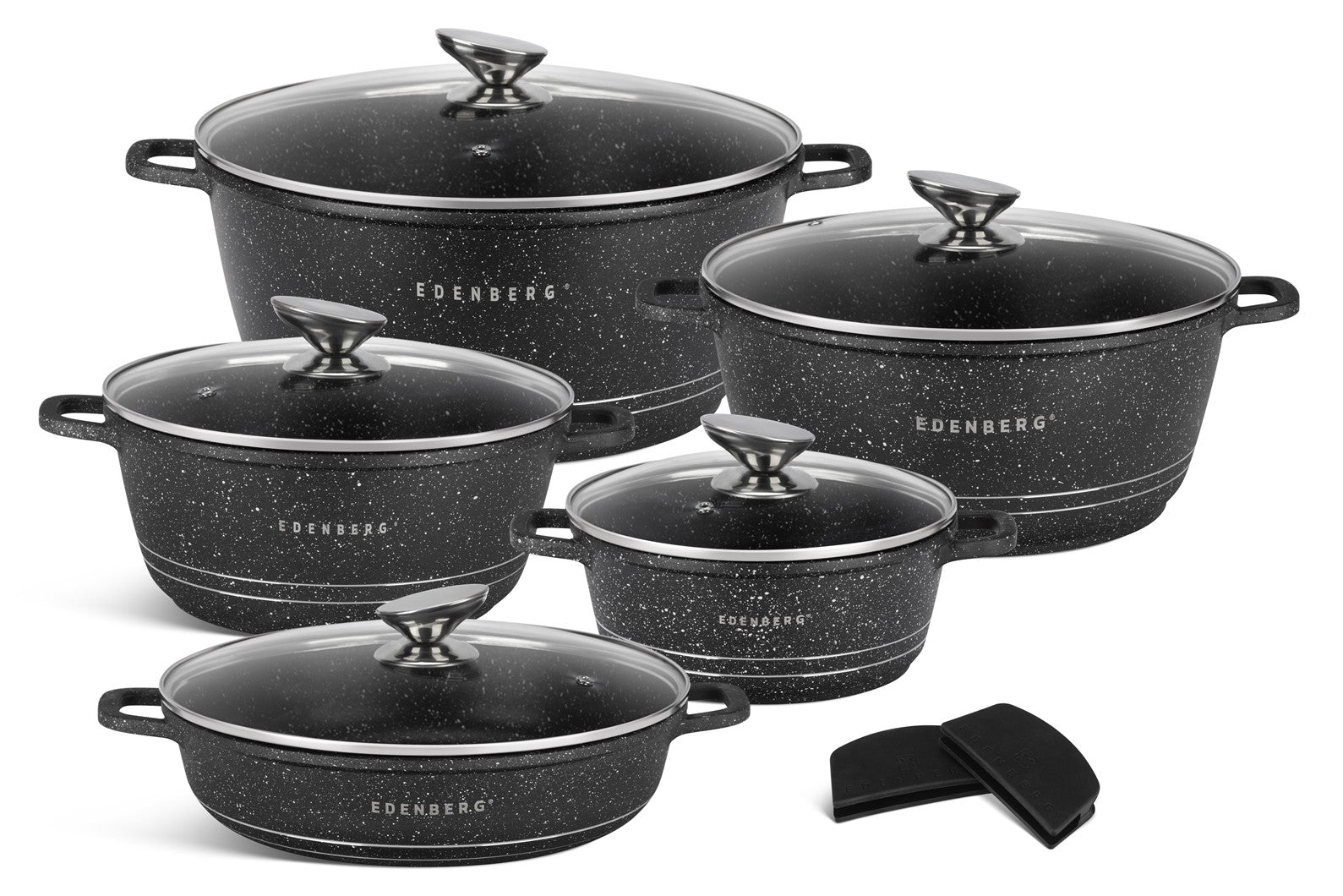 Prachtige 10-delige pannenset van hoge kwaliteit. Een set gemaakt van hoogwaardig gesmeed aluminium en een marmeren coating. Door de marmeren coating bakken je gerechten absoluut niet aan. Tevens is deze pannenset voorzien van een antikleeflaag waardoor het mogelijk is om vetarm te koken. U kunt de pannenset veilig gebruiken in een afwasmachine. De pannen zijn geschikt voor alle warmtebronnen: elektrisch, gas, keramisch, halogeen en inductie. Daarnaast is het ook mogelijk om dit product in de oven te gebruiken ( zonder deksel )