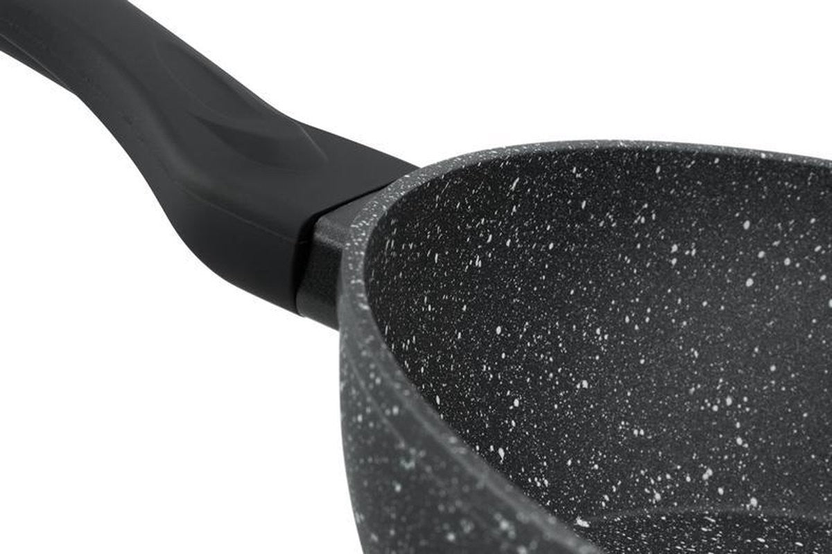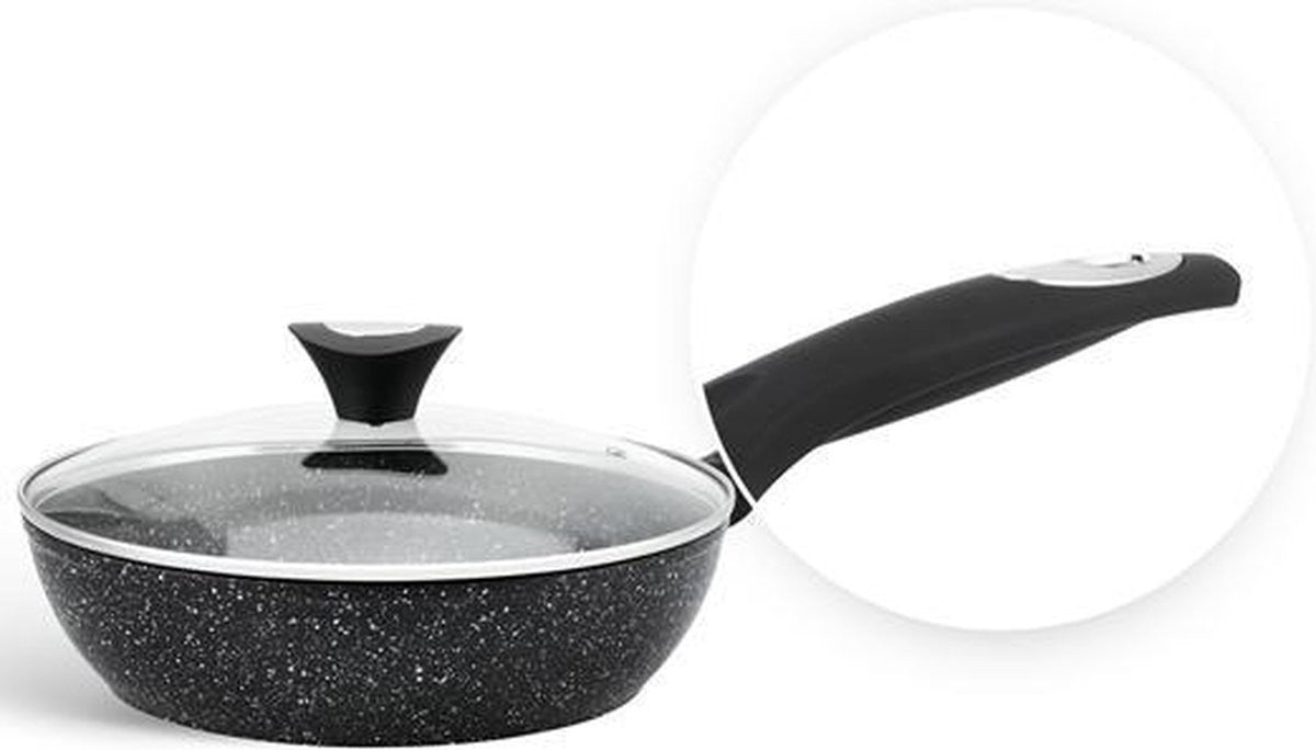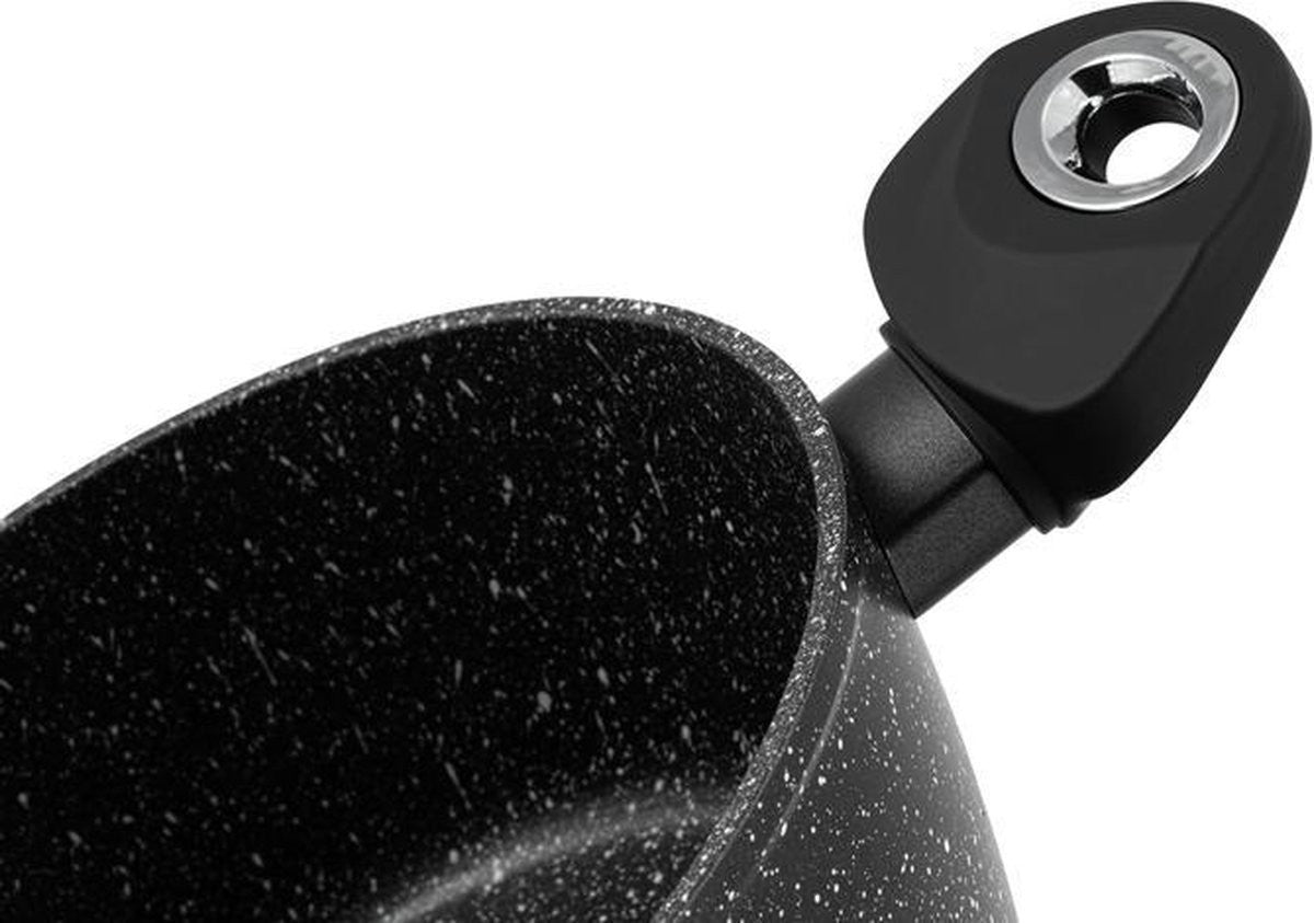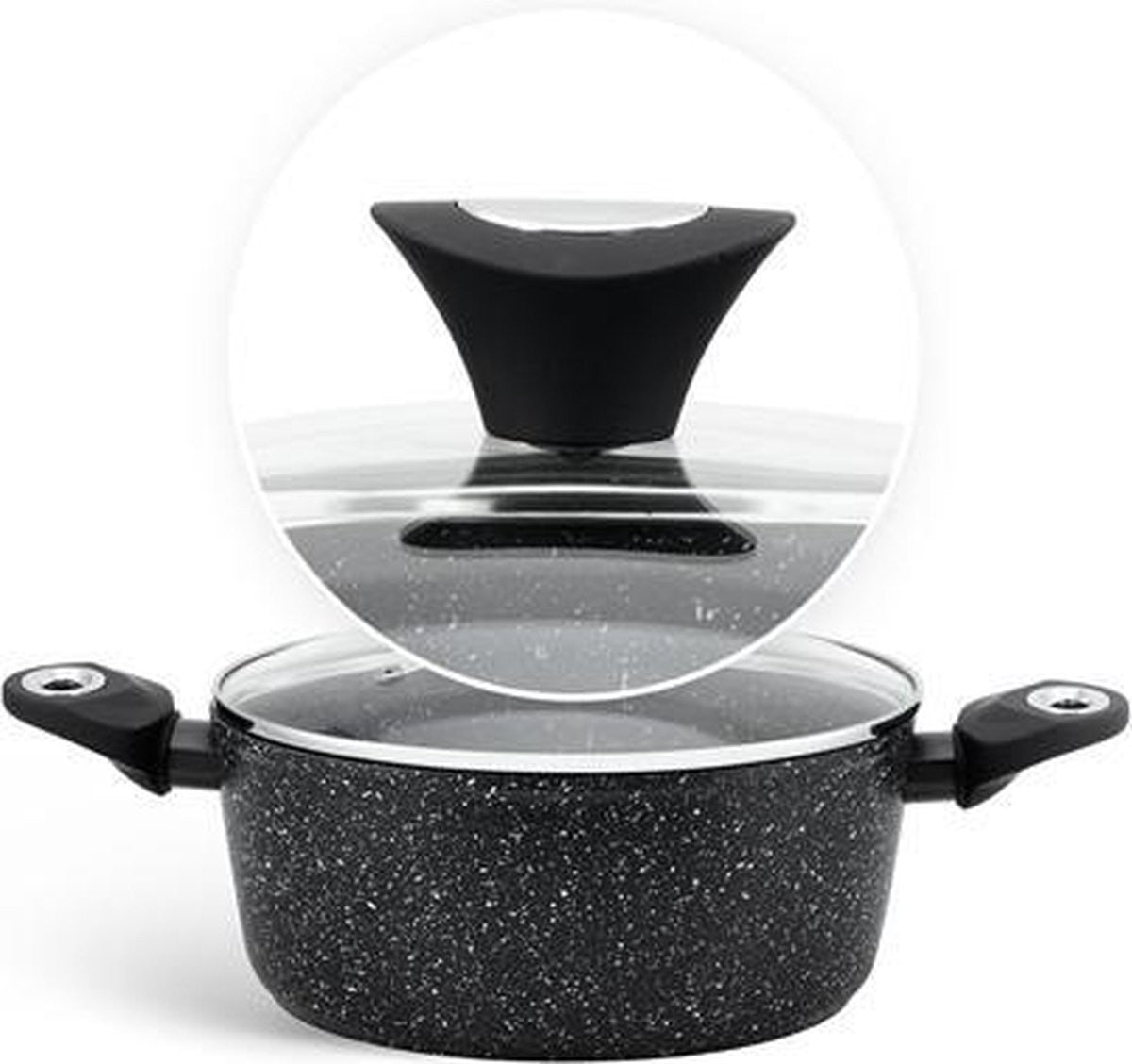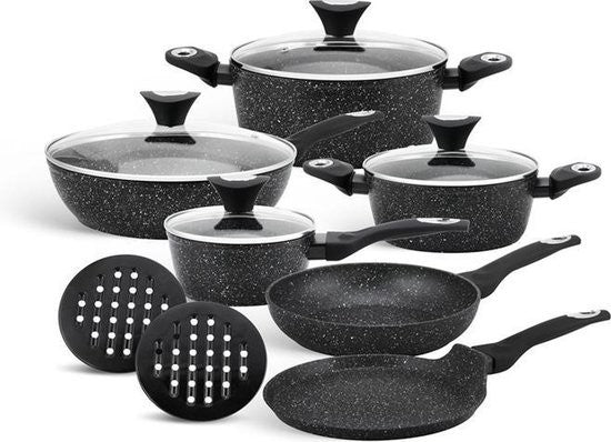Deze prachtige pannenset van Edënbërg wordt geproduceerd onder de strengste Duitse normen en met het beste aluminium. De bodem is bedekt met maar liefst 3 lagen marmer met een mooie zwarte binnenkant die niet verkleurd. Dankzij de dikke bodem zijn de pannen zeer duurzaam en wordt het eten gelijkmatig verwarmd. De pannen kunnen worden gebruik op een kookplaat en ook op een fornuis met inductie.