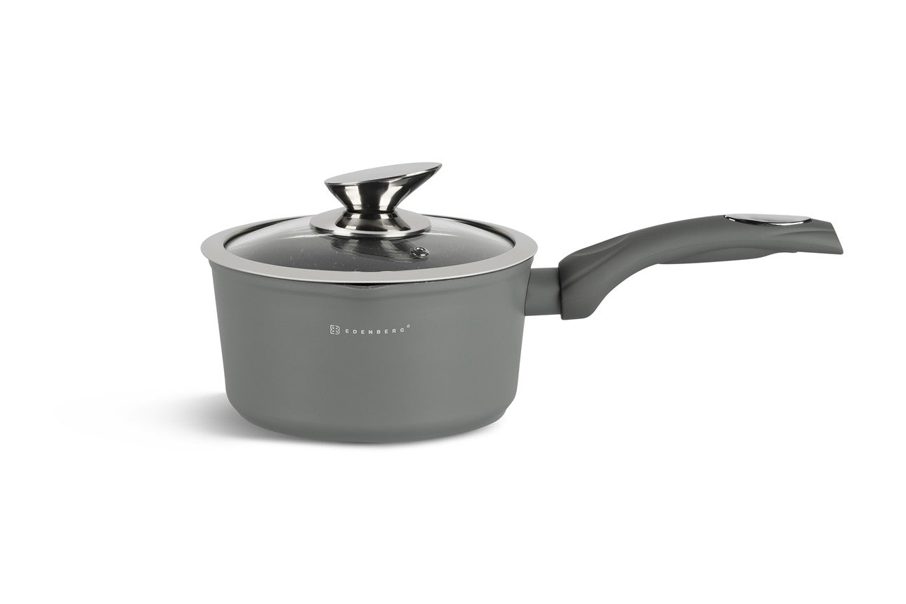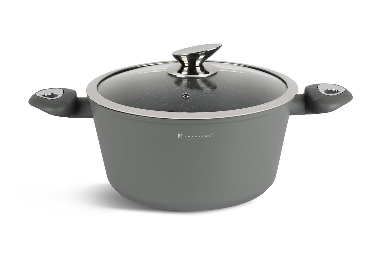 Deze prachtige pannenset van Edënbërg wordt geproduceerd onder de strengste Duitse normen en met het beste aluminium. De bodem is bedekt met maar liefst 3 lagen marmer met een mooie zwarte binnenkant die niet verkleurd. Dankzij de dikke bodem zijn de pannen zeer duurzaam en wordt het eten gelijkmatig verwarmd. De pannen kunnen worden gebruik op een kookplaat en ook op een fornuis met inductie.