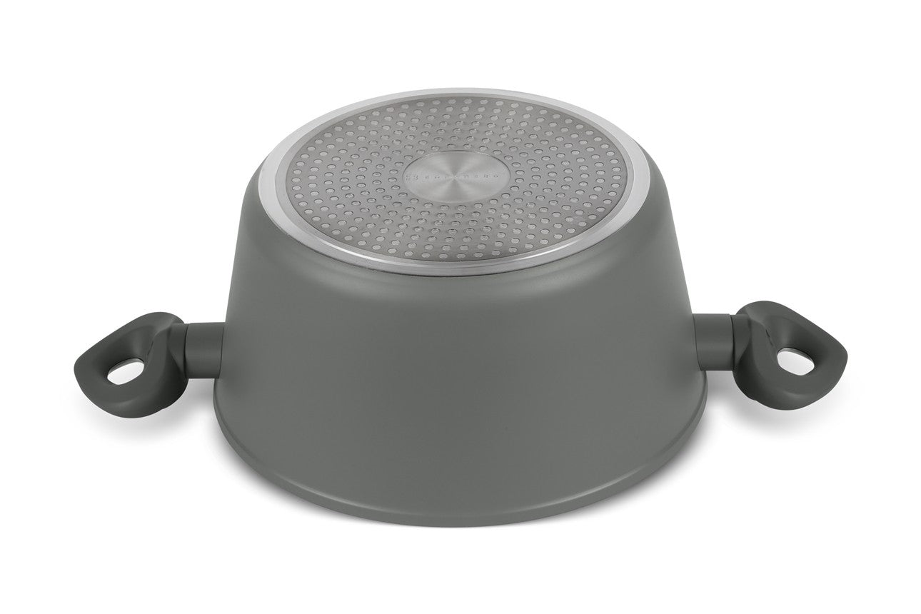 De 3 lagen marmer bodem is de beste anti-aanbaklaag die je je kunt wensen. Het materiaal is tot wel 7 x sterker dan een traditionele anti-aanbaklaag en eten kan niet aankoeken. Je kunt daardoor zonder of met een klein beetje olie of boter gezonde maar ook lekkere gerechten op tafel zetten. Daarnaast zijn de pannen door de marmeren lagen veel makkelijker met de hand of in de vaatwasser schoon te maken. De marmeren lagen behouden hun klaar, zijn minder kwetsbaar, distribueren warmte perfect en bevatten absoluut GÉÉN gifitige stoffen. Wat wilt de professionele of hobby kok nog meer?