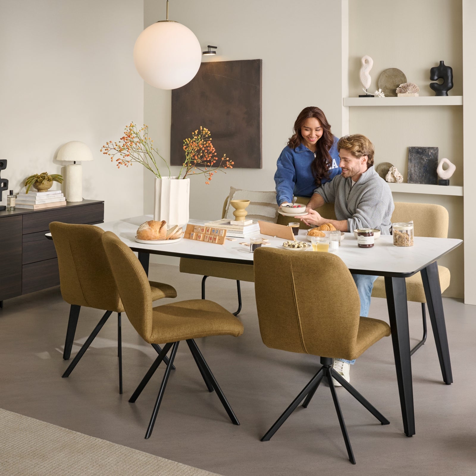Geef je eetkamer een frisse uitstraling met de Selnass eetkamerstoel: een opvallende stoel die elke maaltijd speciaal maakt. Met zijn elegante en moderne design voegt hij zich moeiteloos in iedere interieurstijl. Laat je eetkamer schitteren en beleef sfeervolle momenten aan tafel met vrienden en familie. Comfort: De koudschuimvulling in de zitting en rugleuning van de Selnass eetkamerstoel biedt precies de juiste ondersteuning. Deze stoel biedt een comfortabele zitdiepte en zithoogte, ideaal voor lange, ontspannen diners.- afmeting 50x88x64 cm (bxhxd)