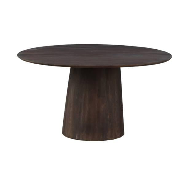 Eetkamertafel Oslo is een prachtige ronde eettafel van mangohout in een bruine kleur. De ronde eettafel heeft een diameter van 150cm. Naast het ronde blad heeft eettafel Oslo ook een ronde poot gemaakt van mango hout. Hierdoor kan je nog meer eetkamerstoelen plaatsen aan deze bijzondere en mooie eettafel. Doordat de tafel rustiek is afgewerkt en daarna in een bruine kleur is gezet, geeft dit uw interieur een chique maar ook een warme uitstraling!