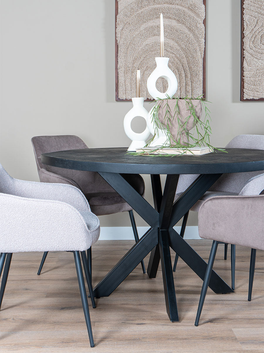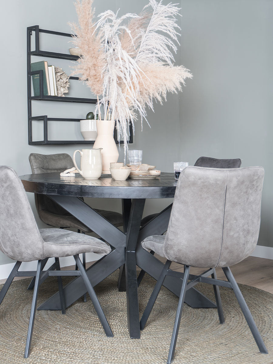 - Door de ronde vorm van de zwarte eettafel kun je gezellig bij elkaar zitten en iedereen in de ogen aankijken