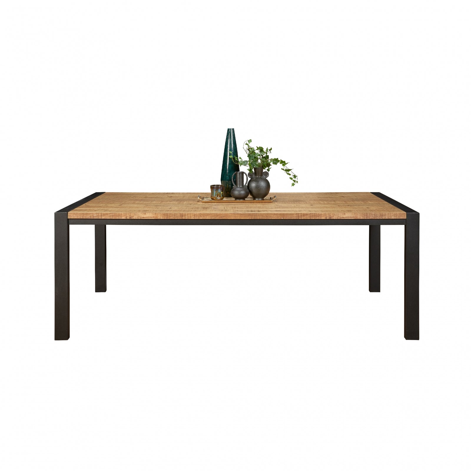 De eettafel Tilburg heeft een opvallende uitstraling dankzij het warme mango houten blad en het stoere zwarte metalen frame. Het U-frame is zelfs zichtbaar aan de bovenkant van de tafel, wat zorgt voor een moderne en trendy look. Of je nu een liefhebber bent van industrieel, landelijk of modern design, de eettafel Tilburg past perfect bij elke woonstijl. Specificaties: - Afmetingen: 160 cm breed, 90 cm diep en 76 cm hoog - Geschikt voor 4 stoelen, afhankelijk van de breedte van de stoelen - Kras- en stootbestendig lamulux blad met een realistische houtlook| Afmetingen | |