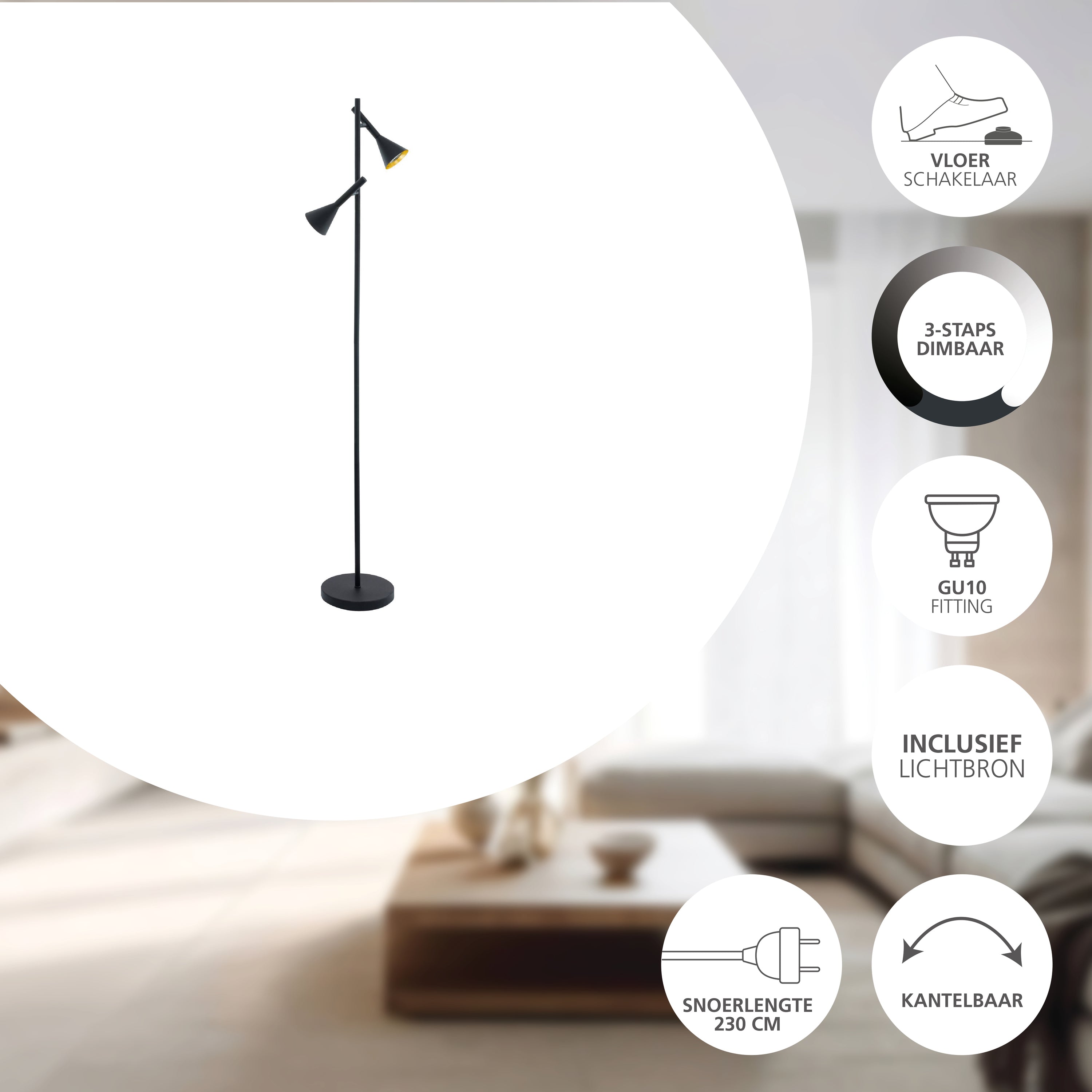EGLO Cortaderas Vloerlamp - 144.5cm - GU10 - Zwart|Goud