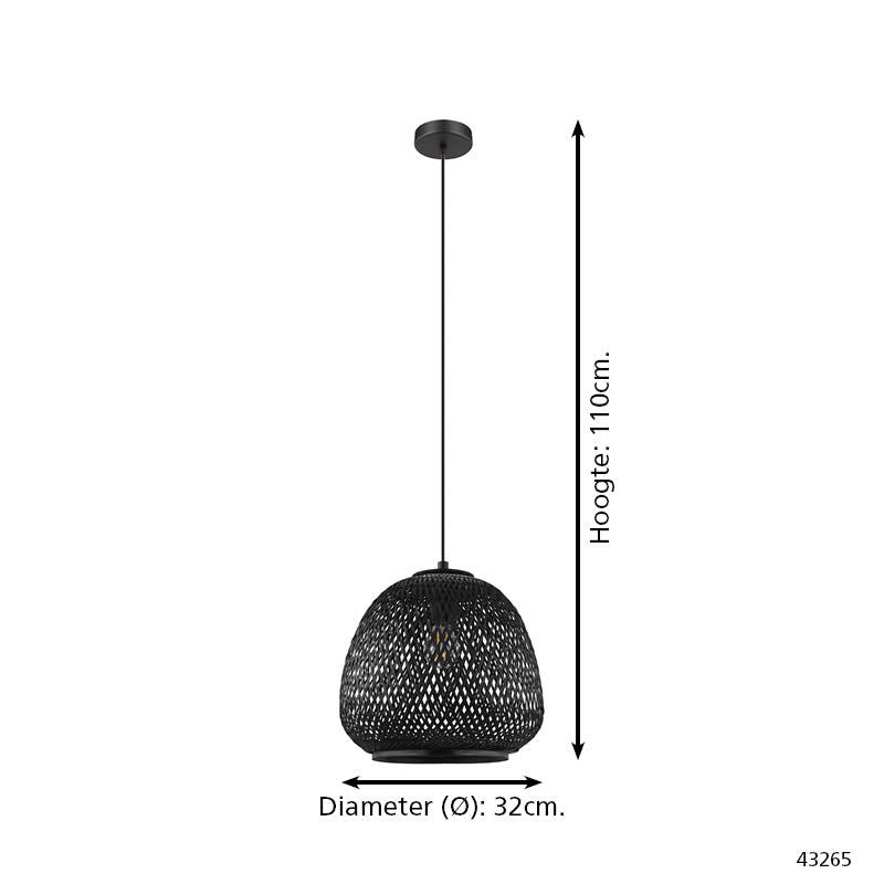 EGLO Dembleby 1 - Hanglamp - E27 - Ø 32 cm - Zwart