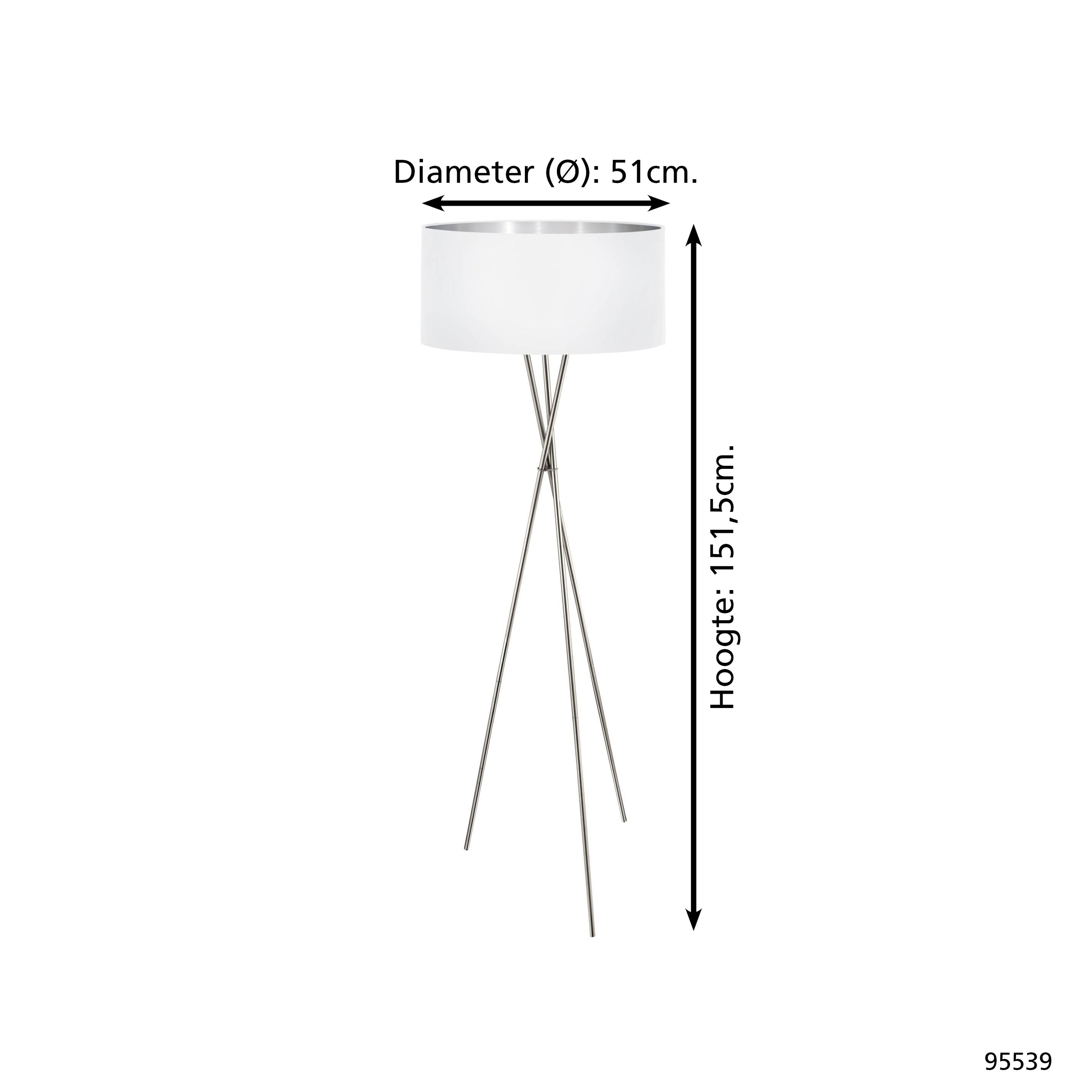 EGLO Fondachelli Vloerlamp - E27 - 151,5 cm - Grijs|Wit|Zilver