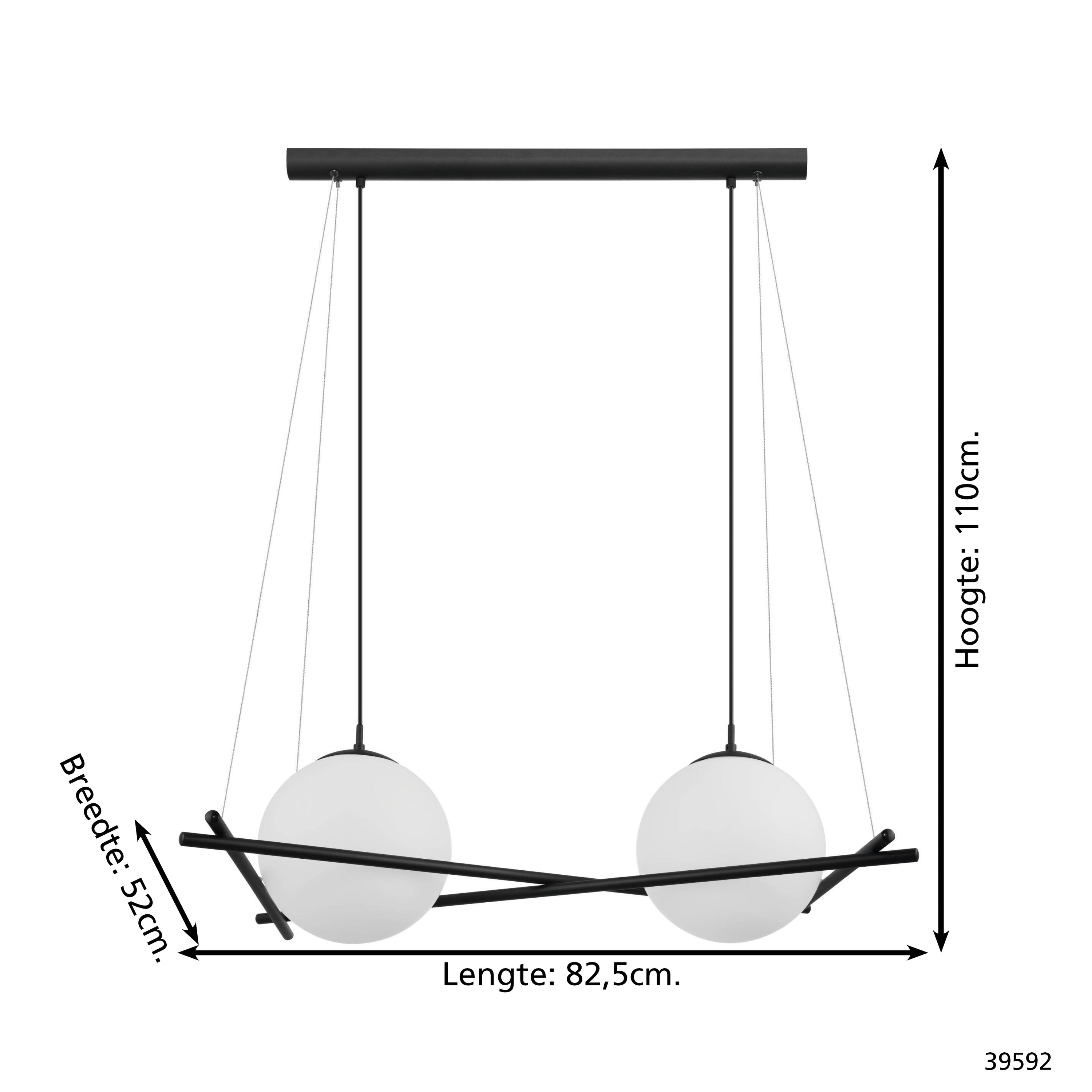 EGLO Hanglamp - E27 - 2lichts - Staal - Zwart | Glas opaal-mat - Wit
