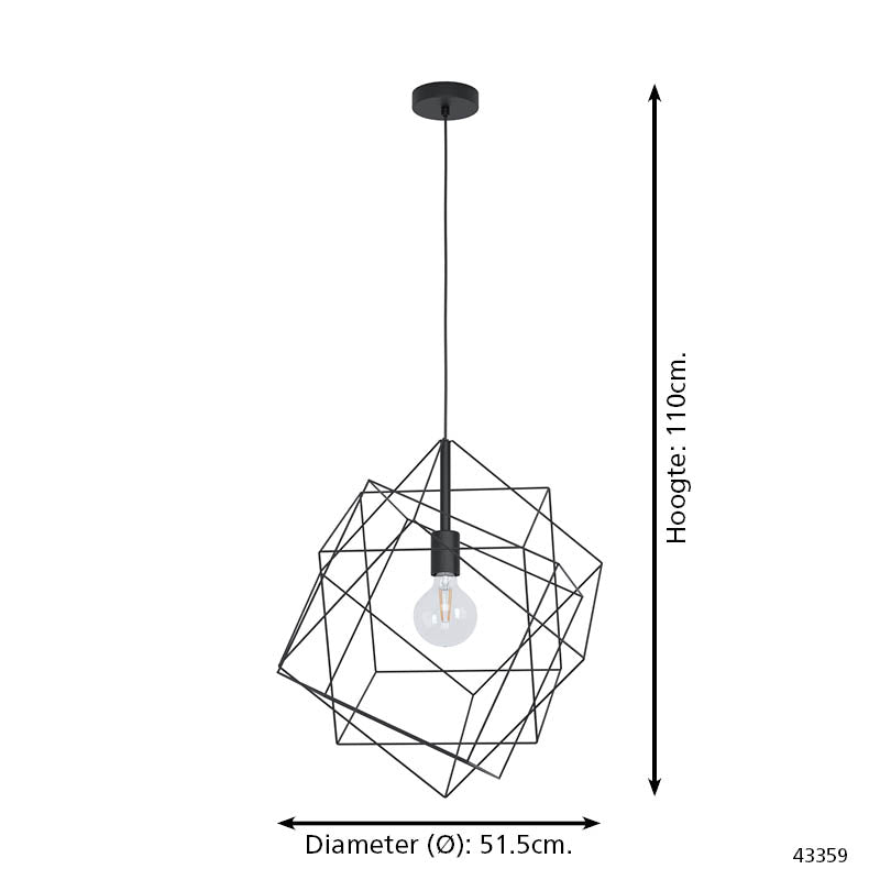 EGLO Straiton - Hanglamp - E27 - Ø 51,5 cm - Zwart