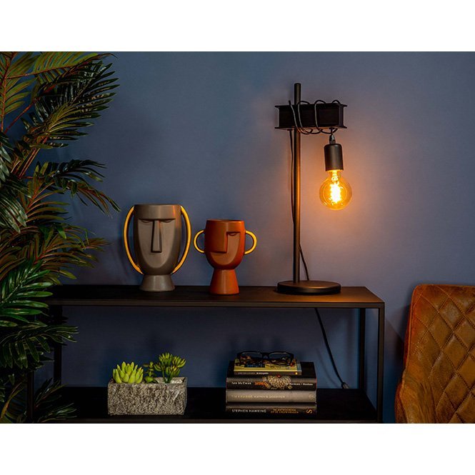 De Townshend tafellamp is een stoere tafellamp in de afwerking van zwart metaal. Doordat de fitting met een zwart snoer aan de balk zit gewikkeld, geeft dit een stoere uitstraling aan deze tafellamp. Deze stoere tafellamp is voorzien van een E27 fitting voor maximaal 40 watt. De Townshend tafellamp is 16,5 cm diep, 15,5 cm breed en 50 cm hoog. Eventueel is deze lamp binnen uw interieur uit te breiden met de Townshend hanglamp en wandlamp. Merk: Eglo