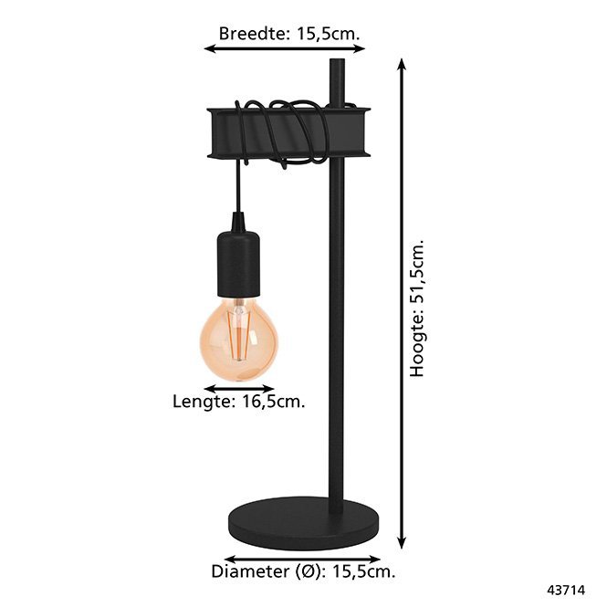 - Mooie lamp met een afmeting van 16,5 x 15,5 x 50 cm (d x b x h)