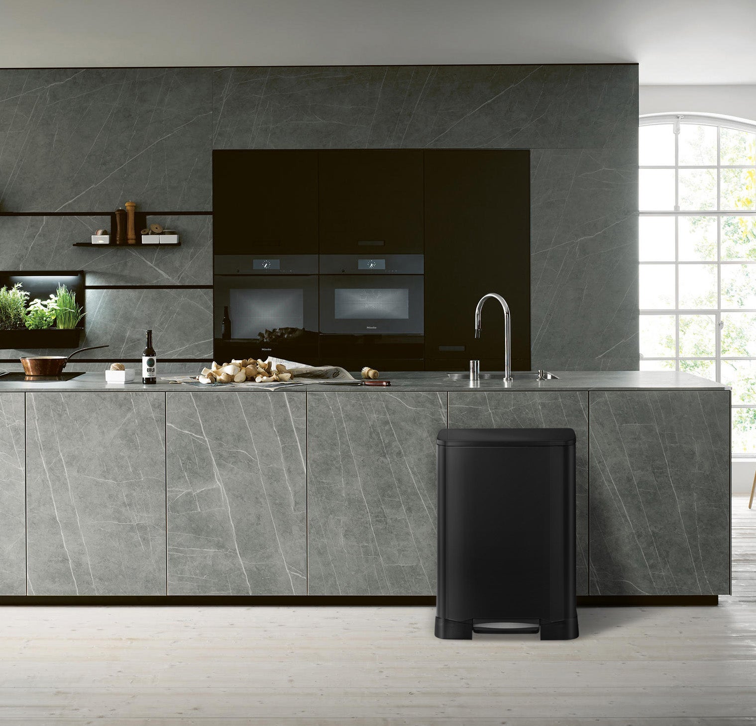- De Neo-Cube Pedaalemmer is vervaardigd uit hoogwaardig roestvrij staal en heeft een moderne zwarte afwerking