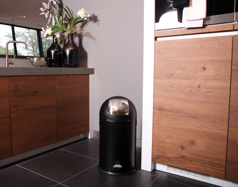 De matzwarte Kickcan vuilnisbak van EKO is een trendy en elegante afvalbak met een 33 L gegalvaniseerde binnenbak en een stevig voetpedaal. De binnenemmer is uitneembaar voor eenvoudige reiniging en het verwisselen van de afvalzak. Daarnaast is de afvalbak gemaakt van roestvrij staal en is hij een ideale afvalcontainer voor elke moderne keuken. Hij is ruimtebesparend en past perfect tegen de muur of in een hoek.
