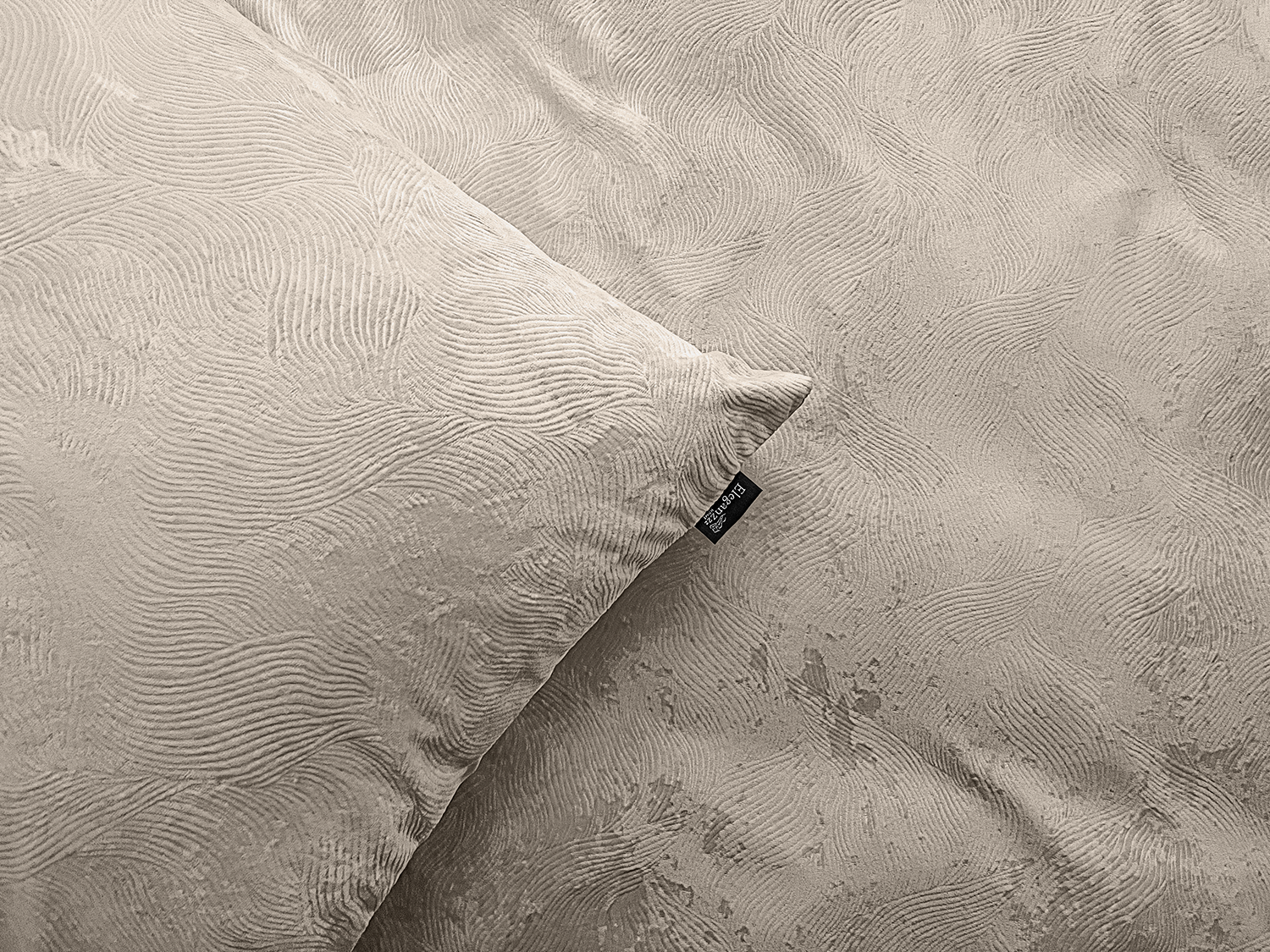 Voor ultieme souplesse en luxe in je slaapkamer kies je voor het 3D velvet embossed dekbedovertrek Wave. Dit heerlijk soepel vallende dekbedovertrek van Eleganzzz is voorzien van een subtiele golvende structuur die een serene, bijna rustgevende uitstraling geeft. De glans en diepte van het 3D reliëf zorgen voor een chique look die moeiteloos past in een modern of minimalistisch interieur.
