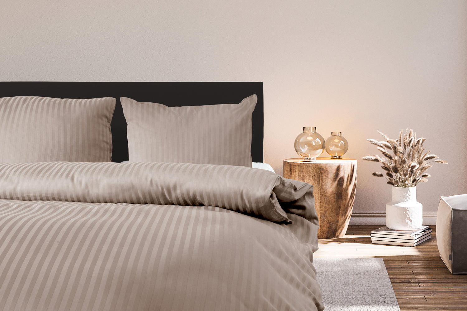 Eleganzzz Dekbedovertrek Hotel Kwaliteit Satijn Streep zand